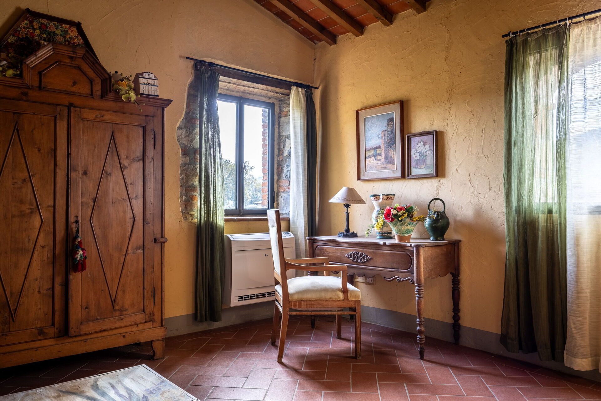 Upon arrival you’ll find a nice clean well-maintained property with views of the hills ideal for a peaceful vacation in Tuscany. Regardless of how you spend your days - shopping, sightseeing, visiting museums or just driving in the countryside, when you arrive home you can unwind with your family and friends for a perfect ending to another day in Tuscany. If you enjoy cooking for family and friends there is a well-equipped kitchen including coffee machine, toaster, stove and refrigerator, as well as, plenty of tableware and cutlery for up to two people.