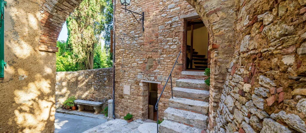 It is located in the charming, peaceful medieval hamlet of Serre di Rapolano. The town was built around a Byzantine fortress after 500 AD. Today it is an excellent base for visiting the marvels of Tuscany.