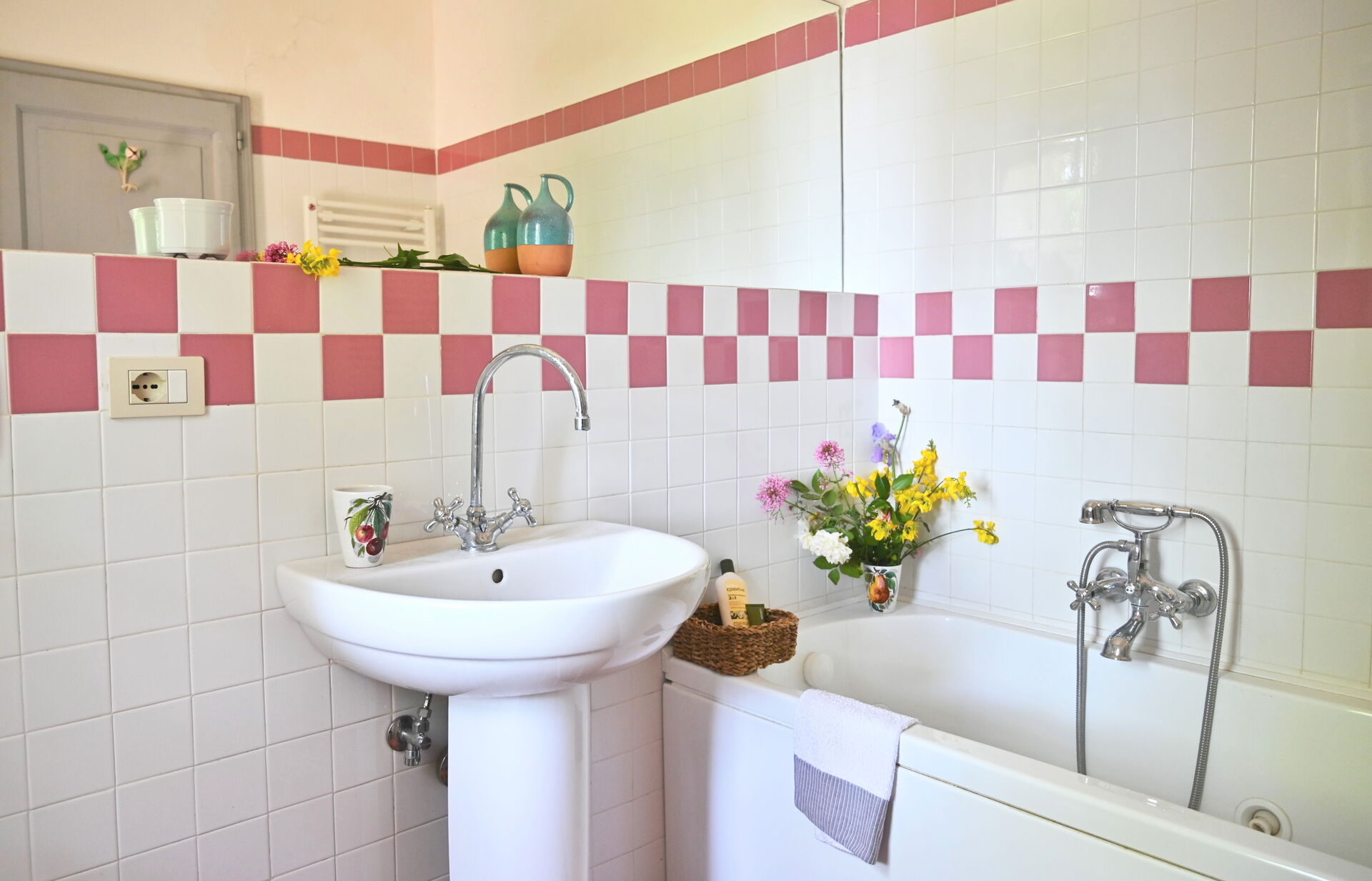 Bathroom 1: basin, toilet, bidet, shower, hairdryer.