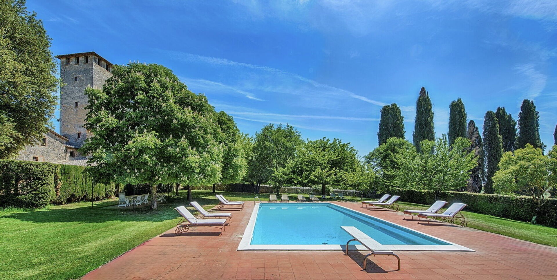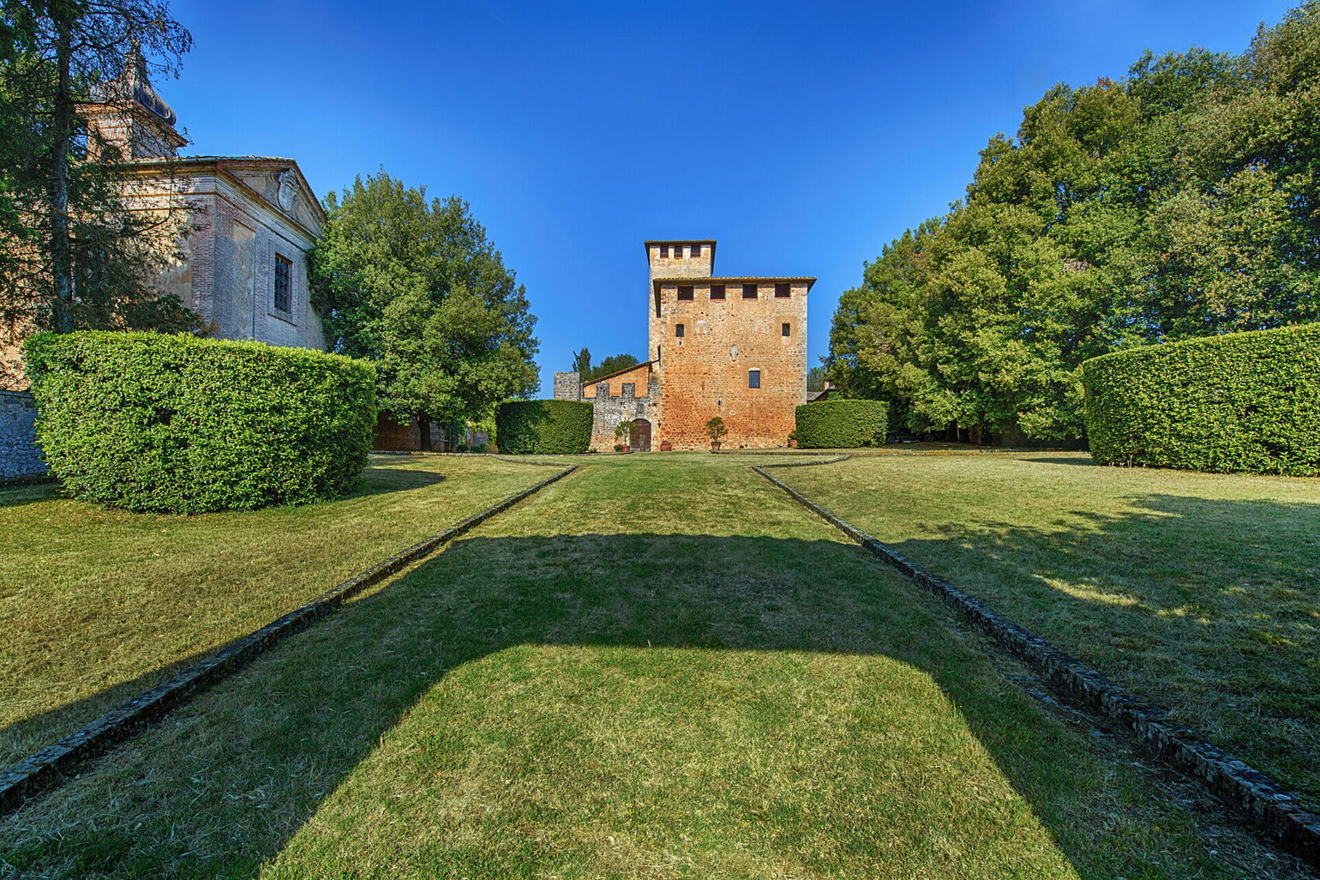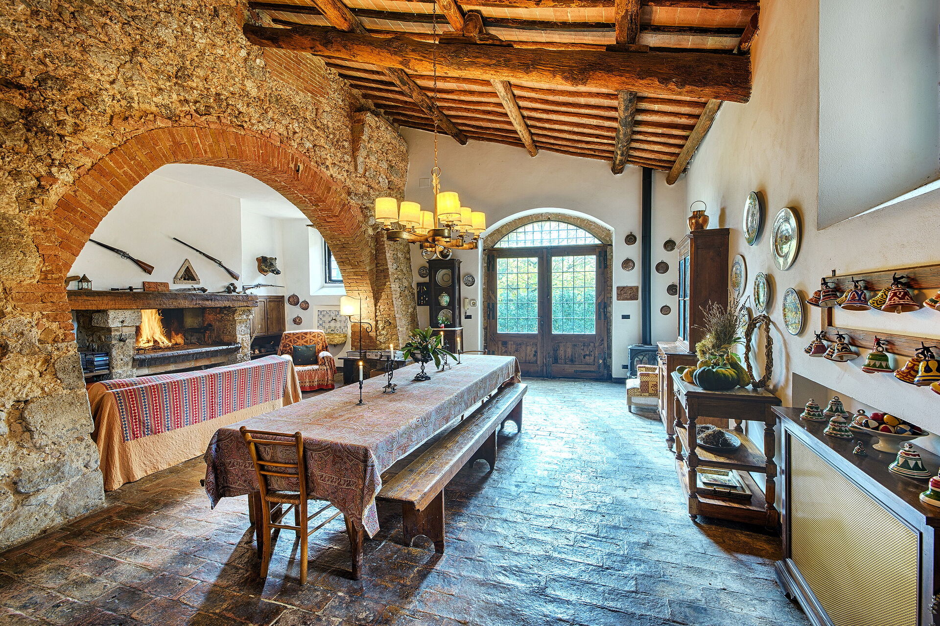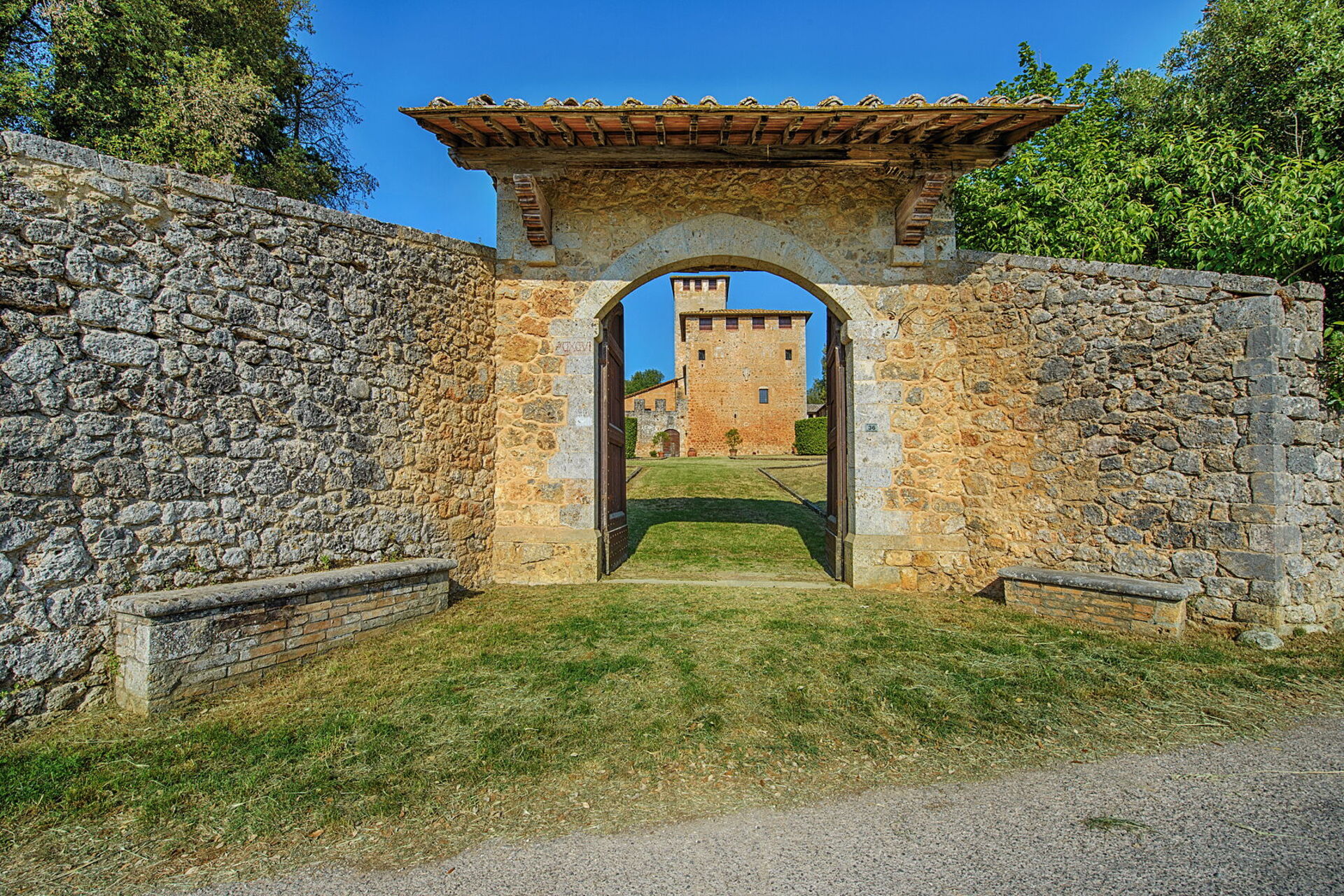 Nestled in the lush greenery of the Montagnola Senese, this magnificent property is a masterfully preserved 13th-century castle located just a 15-minute drive from the historic heart of Siena. The estate has been meticulously restored by its owners, who reside in the main tower in a secluded area that remains entirely private and separate from guest accommodations.