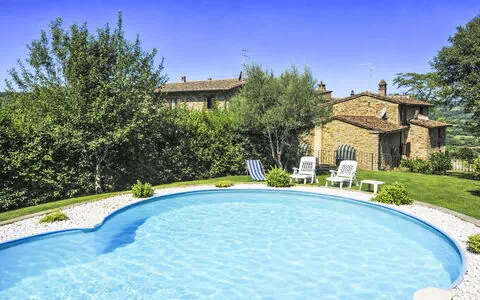 Cottage Roccaio is ideally positioned for exploring the renowned attractions of Tuscany and Umbria. The charming hilltop town of Cortona is just 11 km away, while the historic city of Arezzo can be reached within 22 km. The picturesque town of Montepulciano, famous for its wine, is located 38 km from the property, and the magnificent city of Firenze is 100 km away. Nature enthusiasts will appreciate the proximity to Lago Trasimeno, a well-known lake that is easily accessible at 29 km from the house. The property's location in Castiglion Fiorentino, Italy, serves as an excellent base for discovering the cultural and natural treasures of the region.
