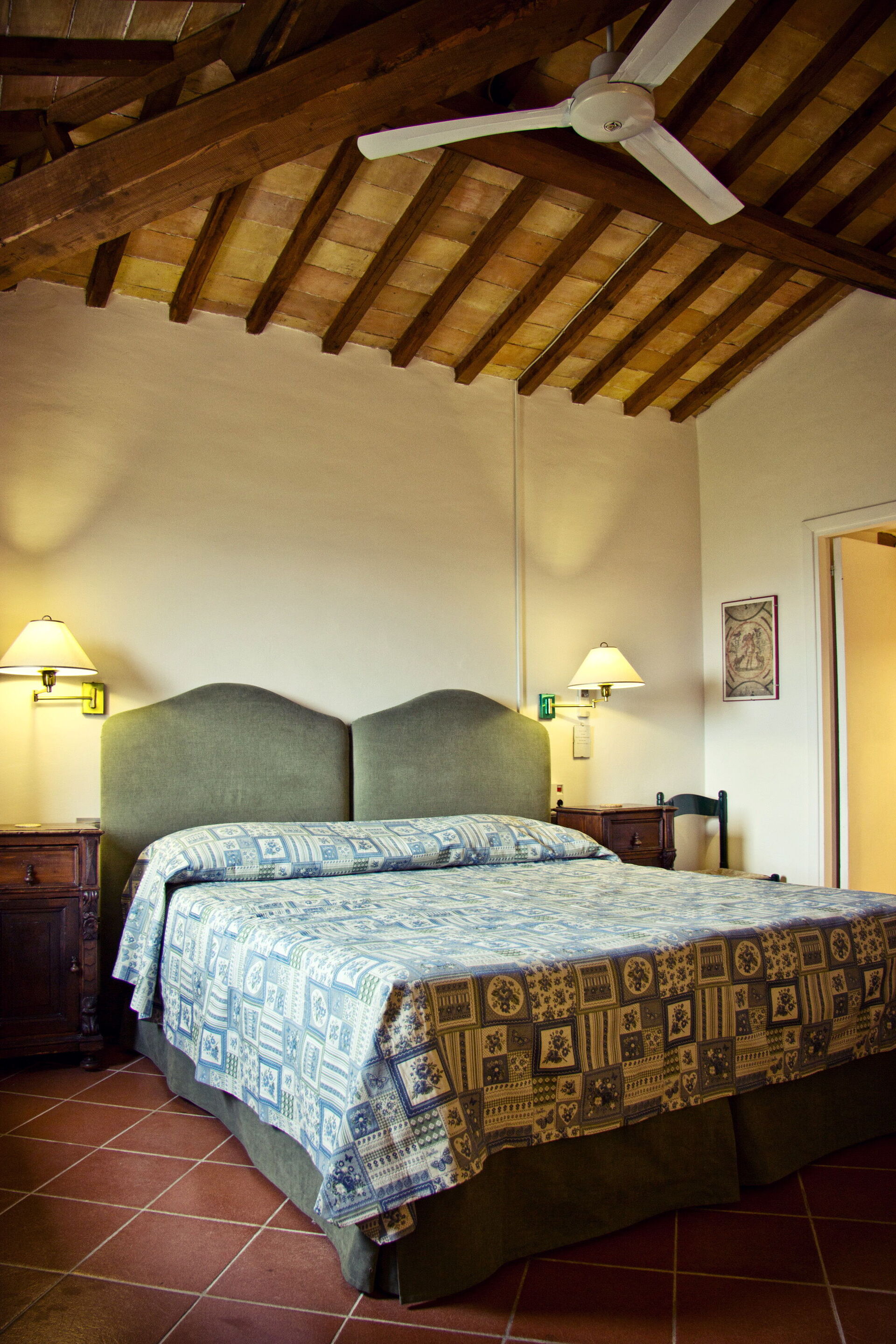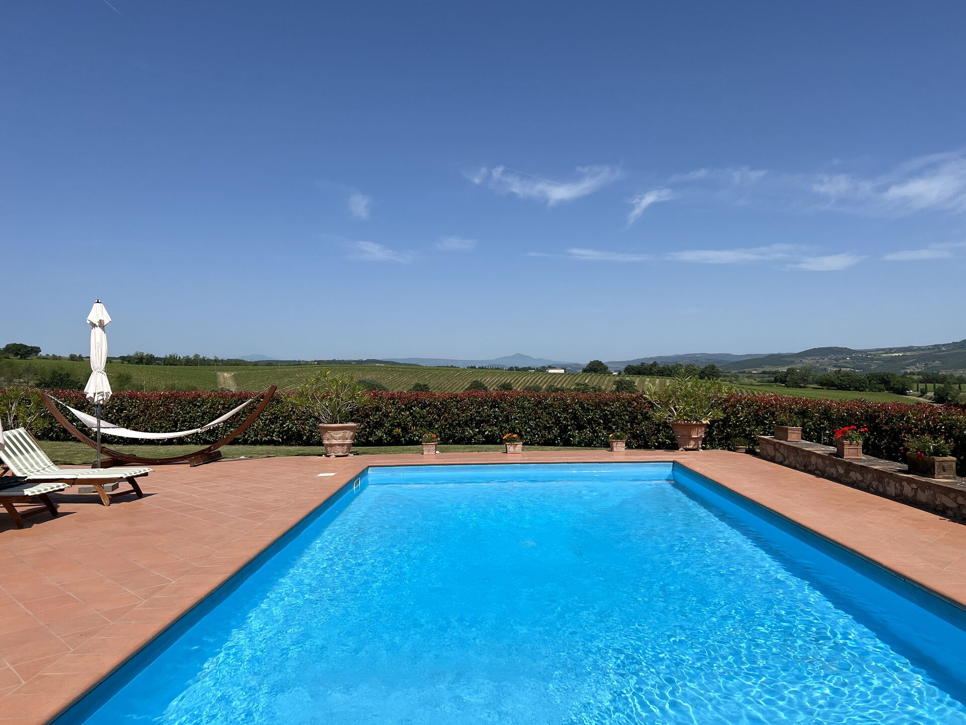 You will find the villa comfortably accommodates up to 11 guests across 6 well-appointed bedrooms, each paired with 6 thoughtfully designed bathrooms. The main level presents a showcase of local artisanship, featuring traditional wood-beamed, vaulted ceilings and terra-cotta-tiled floors throughout. This floor houses 2 bedrooms and 2 bathrooms, along with generous communal spaces. The first bedroom features an iron double bed, a double wardrobe, a chest of drawers, and 2 chairs, offering views over the rolling hills of Orvieto with a private bathroom just outside the room equipped with a stand-alone shower. The second bedroom on this level serves as a cozy guest room furnished with a single bed, a chest of drawers, a chair, and built-in storage, ideal for 1 guest and offering access to the library. The main level also includes a spacious kitchen and dining area, a pantry with laundry facilities, a cozy living room furnished with double sofas and armchairs, a library with a vaulted ceiling and a collection of 500 to 600 books, and a studio space suitable for work or relaxation. The upper floor provides a haven of comfort and privacy, offering luxurious accommodations with breathtaking views of the surrounding hills and vineyards. The first master bedroom is a bright, spacious room with a double bed, chest of drawers, walk-in closet, and a desk, complemented by an en-suite bathroom featuring a tub and a separate shower, while French doors open onto a raised terrace with views of the pool and countryside. The second master bedroom is beautifully appointed with a double bed convertible to twin beds, high ceilings, and vineyard views, along with a well-equipped en-suite bathroom. A fully self-contained private apartment on the upper level offers an ideal arrangement for extended family or friends, featuring 2 bedrooms, each with en-suite bathrooms and flexible bed configurations available as doubles or twins, a fully furnished kitchen, and a private living area.
