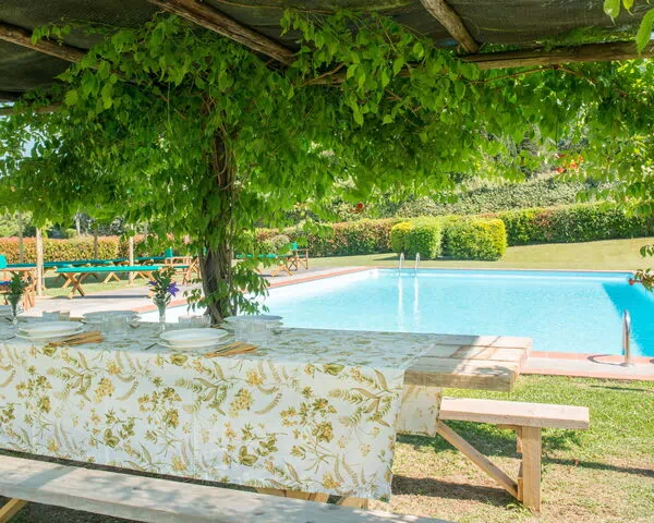 You will have exclusive access to the extensive outdoor spaces surrounding Villa Martini, including the magnificent swimming pool that measures 6.5 x 15 meters and is located 200 meters from the main house. The poolside area is thoughtfully furnished with comfortable sun loungers and sunshades where you can relax and soak up the Tuscan sunshine. A portico adjacent to the villa provides an ideal setting for al fresco dining, furnished with a table and chairs where you can enjoy meals while taking in the panoramic views of the Mugello valley. The expansive park features a chapel and a grove of century-old trees that add to the historical charm and natural beauty of the estate. The outdoor areas are designed to provide you with peaceful spaces to unwind, surrounded by 230 hectares of farmland with wheat and cereal cultivation alternating with chestnut woods and fields. The laurel hedge provides a natural separation between the villa grounds and the farmhouse apartments, ensuring a sense of seclusion and tranquillity during your stay.