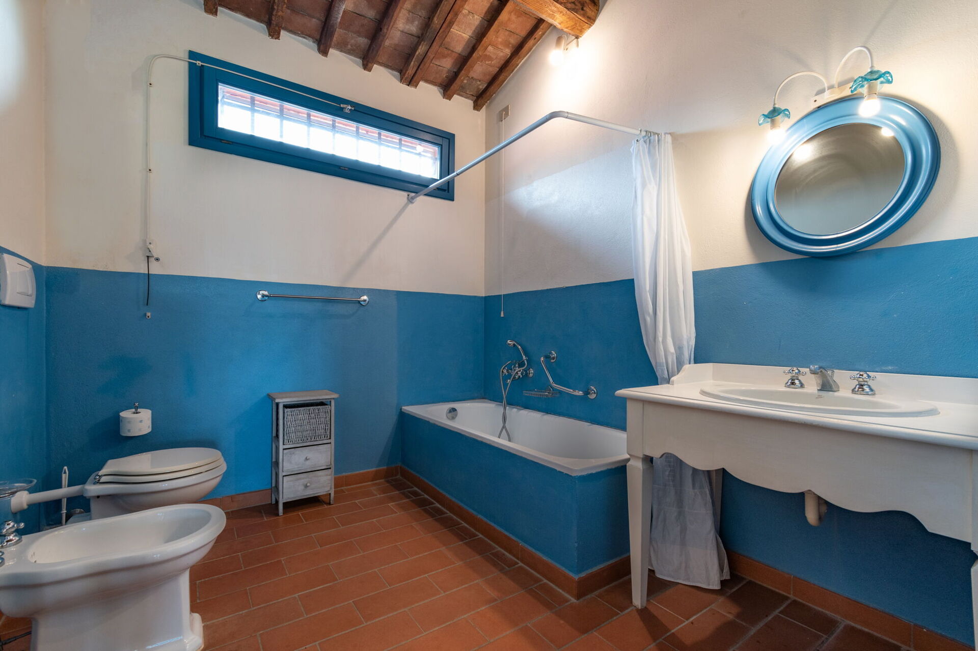 Bathroom: basin, toilet, bidet, bathtub, hairdryer, WIFI internet.