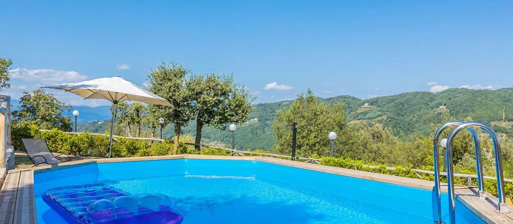 The villa is situated on a hill in Tuscany, offering remarkable panoramic views over the surrounding landscape that make it a truly exceptional retreat. The outdoor area has been thoughtfully equipped to enhance the guest experience, complementing the villa's elevated position with a private pool that allows guests to enjoy the scenery in absolute comfort. The combination of the hillside location, the lush private garden, and the well-appointed exterior spaces makes this property an ideal choice for groups seeking a premium villa rental in one of Italy's most celebrated regions.