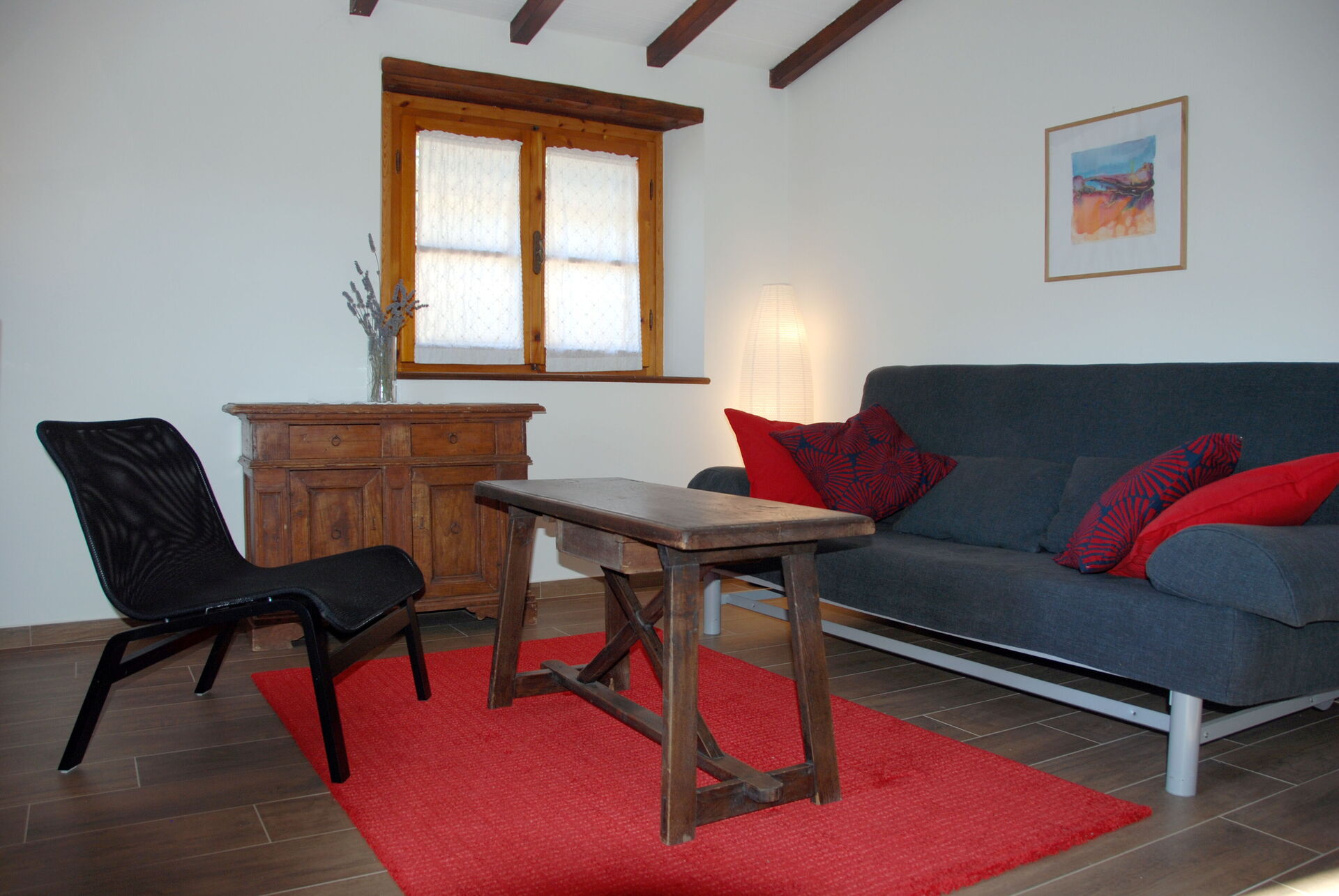 Living room (16.3 m2): two armchairs, working desk, wood burning stove, sofa bed double (length: 2m, width: 1.3m), WIFI internet, air conditioning, mosquito net.