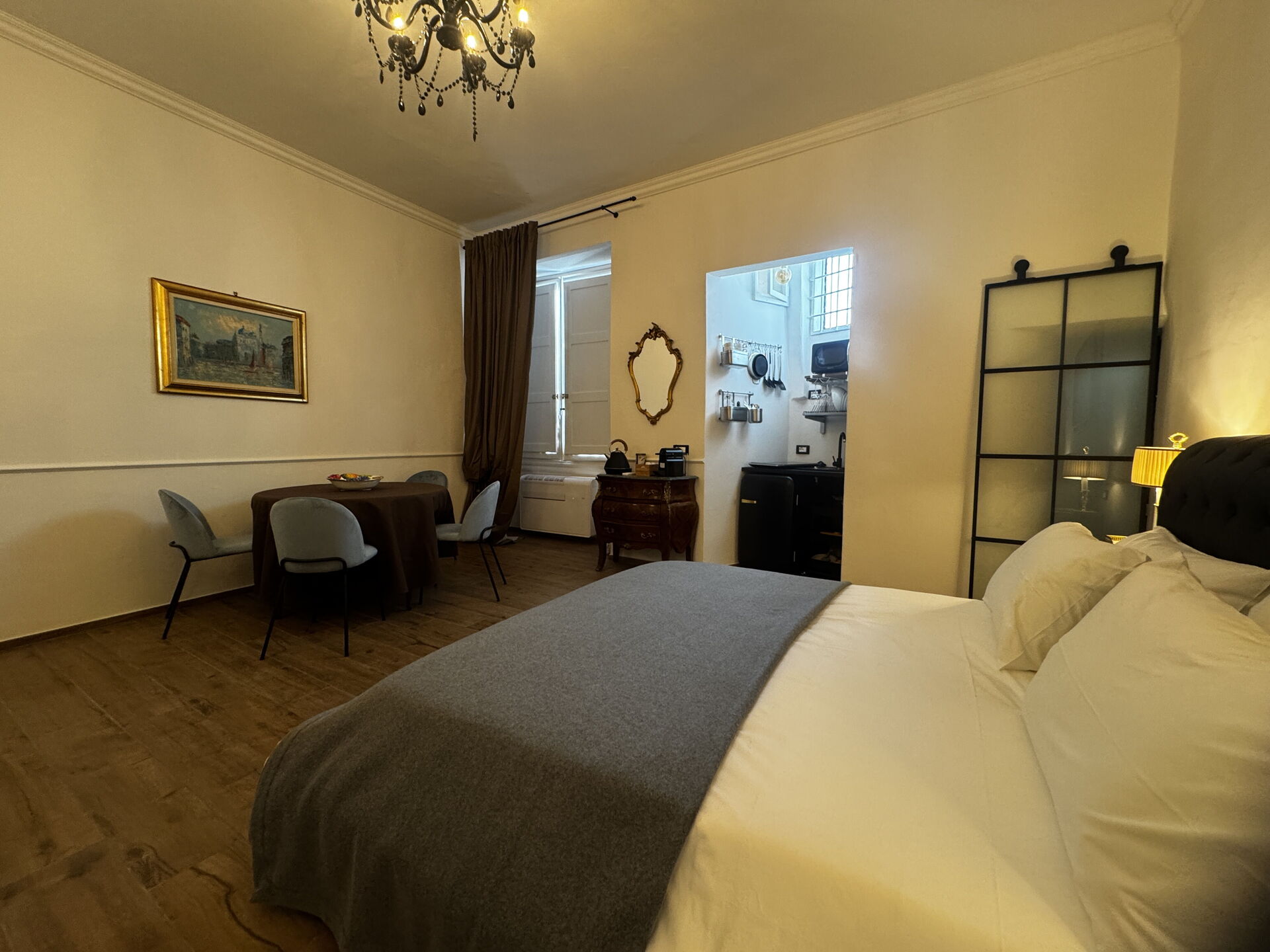 Open space: dining table, double bed, sofa bed double, WIFI internet, air conditioning, fridge, stove top, freezer, iron, well equipped kitchen, microwave, italian coffee machine.