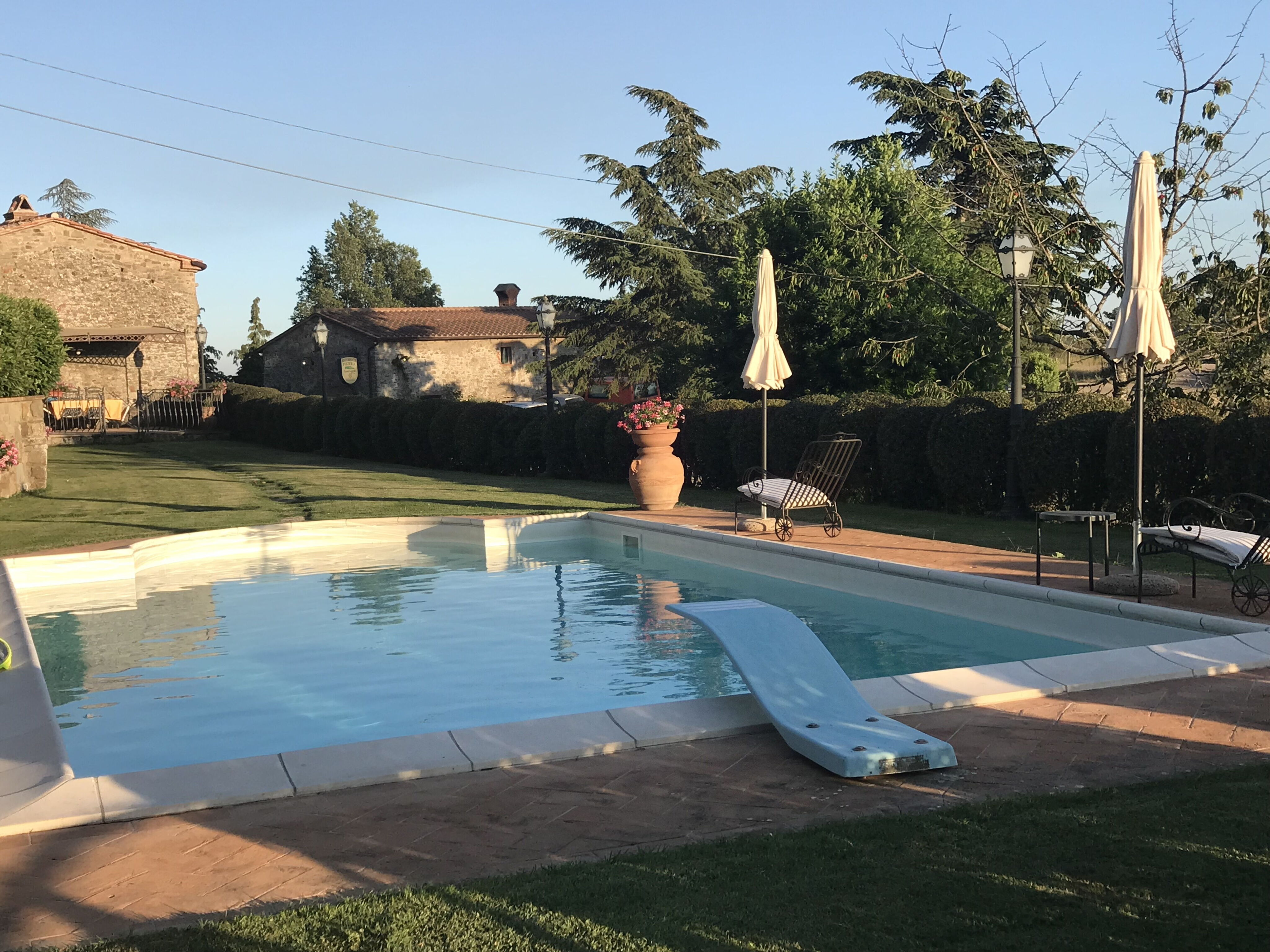 Alles picobello sauber und das Grundstück von der Famillie sehr gepflegt. Toller Pool mit kleinem Sprungbrett. Ideal für Familie. Es gibt ein kleines Nebengebäude zur separaten Miete, das sehr modern und fein hergerichtet wurde. Die überaus freundlichen Eigentümer machten unseren Urlaub zu einem besonders schönen, und das bei nicht idealem Wetter. Wir werden bestimmt wiederkommen. Grazie Mille Domenica, Giovanni und Ivan.