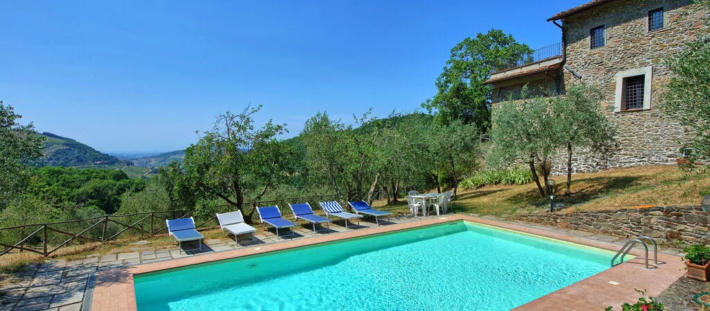 Experience Chianti: dive in the pool, swimming and enjoying our villa. Beautiful stone farmhouse peacefully situated in the heart of the Chianti Classico area. The villa has been skilfully restored with its original architectural features and its ancient charm preserved and turned into a charming country house with private swimming pool. This villa offers splendid views over vineyards and olive groves and is an ideal destination for those who wish to spend a relaxing holiday in close contact with nature. The villa is nicely and comfortably furnished in a typical Tuscan style.
