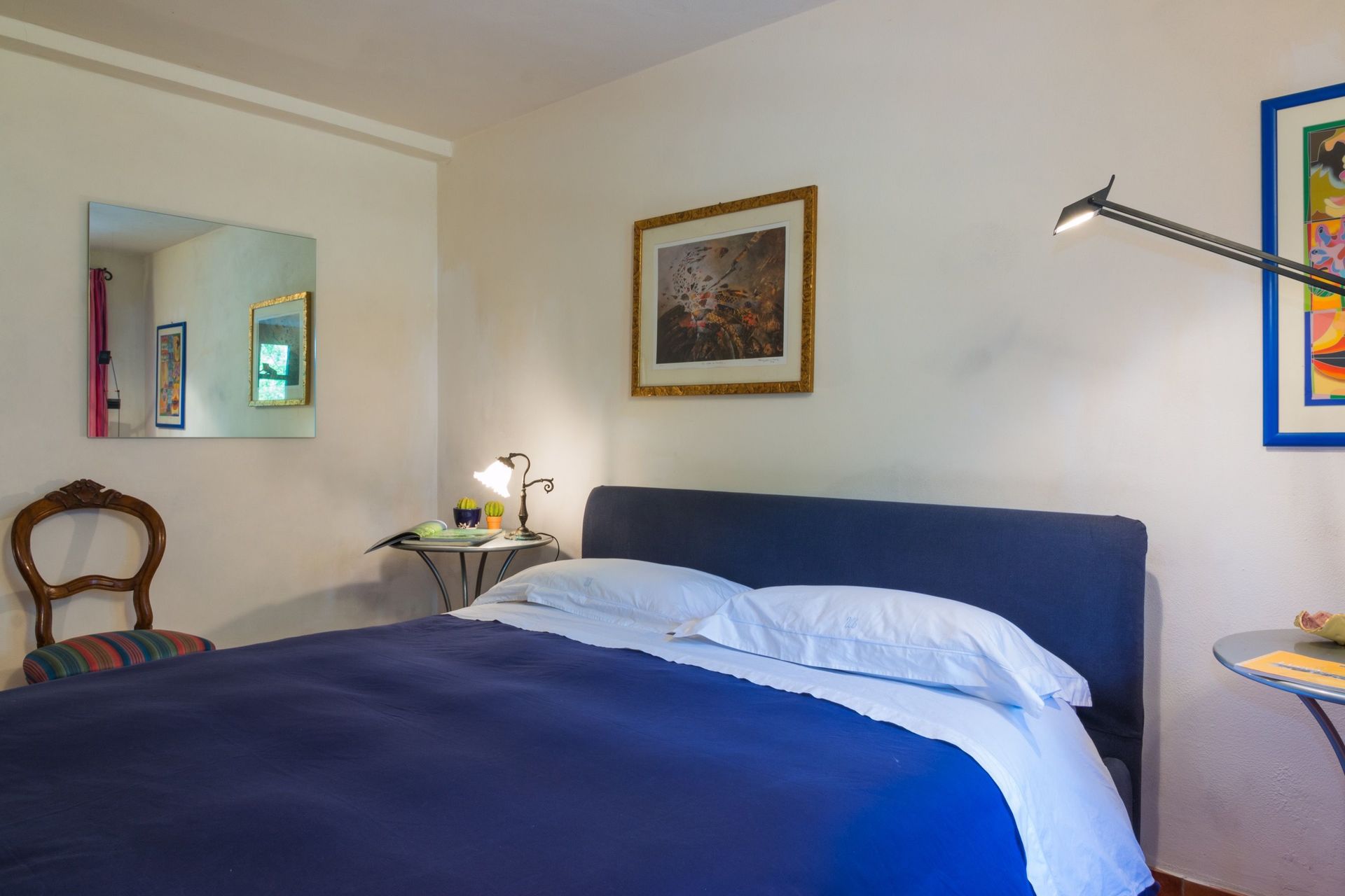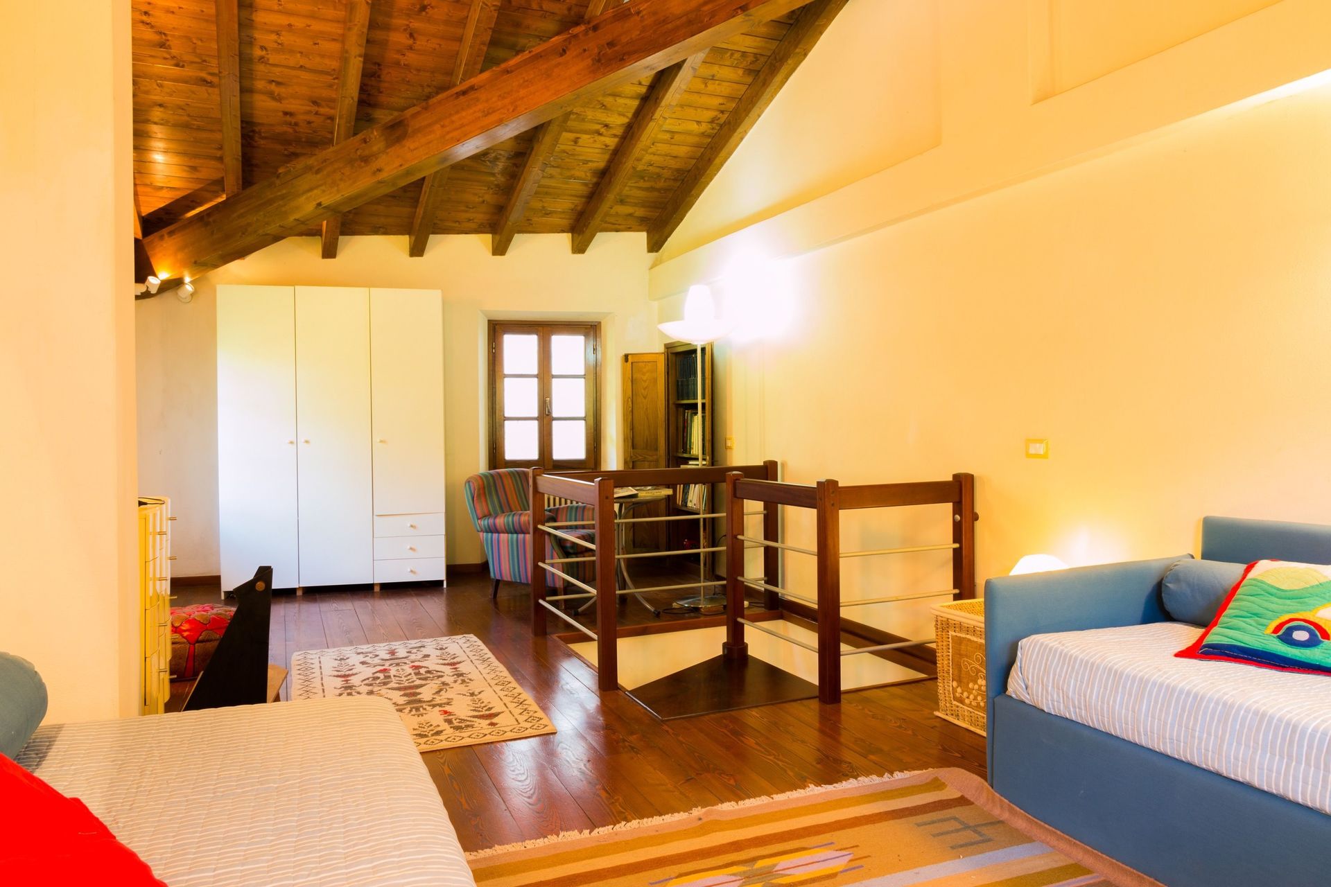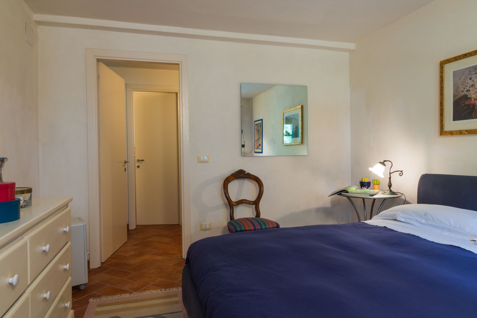 The house is fully furnished with all new or antique pieces (Tuscan pieces from the 19th century), except for a wardrobe. The light fixtures are lavish and we have provided a television (satellite), radio and CD player. We have not yet installed a telephone (there is a public phone in town if you don't have a mobile), but telephone, computer, and internet access are available at our office. A central heating system (gas) has also been installed. And, naturally, a working fireplace adorns the second floor, as how would a mountain house be complete without one!