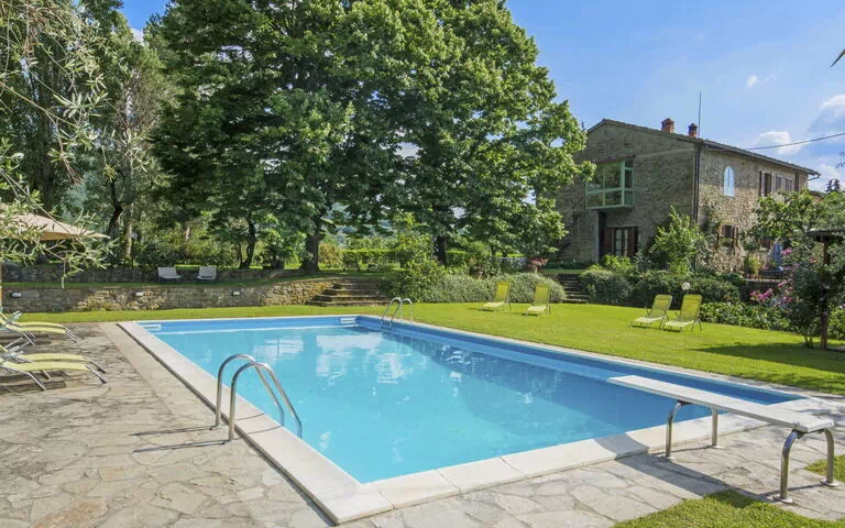 Nestled in the heart of Tuscany, Italy, Poggio a Vico is a charming stone country house situated 3 km from the town of Rufina, perched at 350 metres above sea level and surrounded by lush trees and open meadows. This beautifully renovated property offers a truly authentic Tuscan experience, making it an exceptional holiday rental for those seeking tranquillity and natural beauty in equal measure. The estate comprises 5 apartments in total, 2 of which are dedicated to guests, while the remaining 3 are reserved for the owners. Set on a sun-drenched hilltop, the property commands breathtaking panoramic views of the surrounding countryside. Guests have access to a generously sized swimming pool measuring 6 x 12 metres, with a depth ranging from 100 to 200 cm, available from May 1st to September 23rd. The fenced garden of 1 hectare provides a private and serene outdoor retreat, while WiFi is included for the duration of your stay, ensuring you remain connected throughout your time at this remarkable Tuscan retreat.