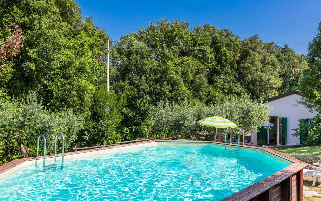 The outdoor spaces of Country house "Podere gli Olivi" are thoughtfully designed to complement the natural beauty of the Tuscan hills. The property features an above-ground swimming pool measuring 7 x 5 meters, with a consistent depth of 120 cm throughout. The pool is available on a seasonal basis, open from May 18th to September 28th, offering a refreshing retreat during the warm summer months. Surrounding the pool, the expansive yard invites you to relax and unwind in a tranquil natural setting. A well-appointed terrace provides the perfect space for outdoor dining and leisure, furnished with garden furniture to ensure your comfort. A barbecue is also available, allowing you to enjoy al fresco meals while taking in the breathtaking views of the Tuscan landscape.