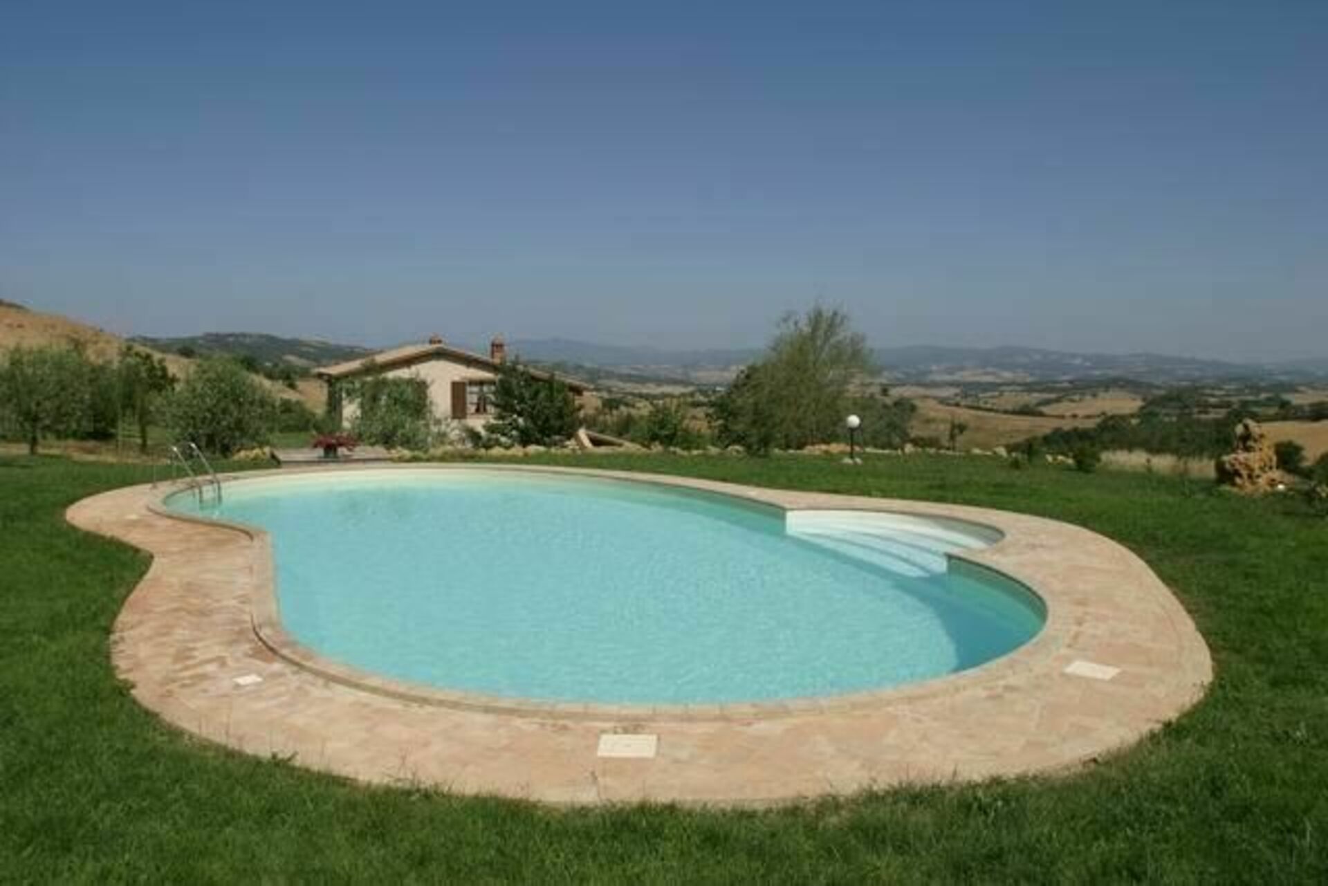 Outside there is a veranda where you can spend summer evenings and all around a large private garden with barbecue, surrounded by olive trees.