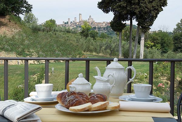 We enjoyed a full week with friends at Il Sogno during September of 2010. Our apartment was lovely and spacious with stunning views of the villa and the Tuscan hills from every window. We cooked in the well-appointed kitchen, dined and read outside on our private patio, and swam in the pool that overlooks the grapevines. Several mornings, we joined the bed & breakfast guests for the morning meal, and one day sat on an outside terrace for an amazing wine-tasting lunch. We walked every day on the quiet back road to nearby San Gimignano, where there is much history, many shops and incredible food.