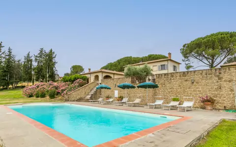 This stunning villa, "Casa dell'Arco," is part of a 330-hectare organic farm nestled in the picturesque Maremma hills of Scansano, Italy. The property itself is a beautifully renovated traditional structure from the late 1800s, offering guests privacy and a spacious outdoor area with furniture for al fresco dining. Enjoy a range of amenities including a swimming pool, expansive yard, internet WiFi, and on-site parking.