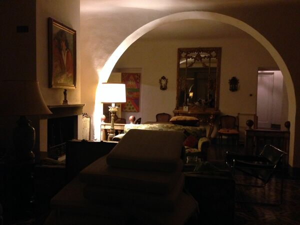 You can also enter by the front of the villa garden where there is a table for dining "al fresco" in an elevated area where the Barbeque is also located. Only few steps will lead up to the bright and spacious living room (90 sqm) which has two comfortable sofa, a fire place and lots of antique furniture and paintings. One room for playing cards with a single bed and one bathroom (wc and basin).
