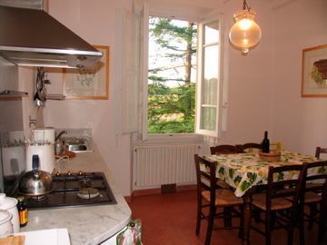 The villa is entirely for you. The ground floor offers a brand new kitchen which was refurbished in March 2014 and a refurbished dining room which can host up to 10-12 people.