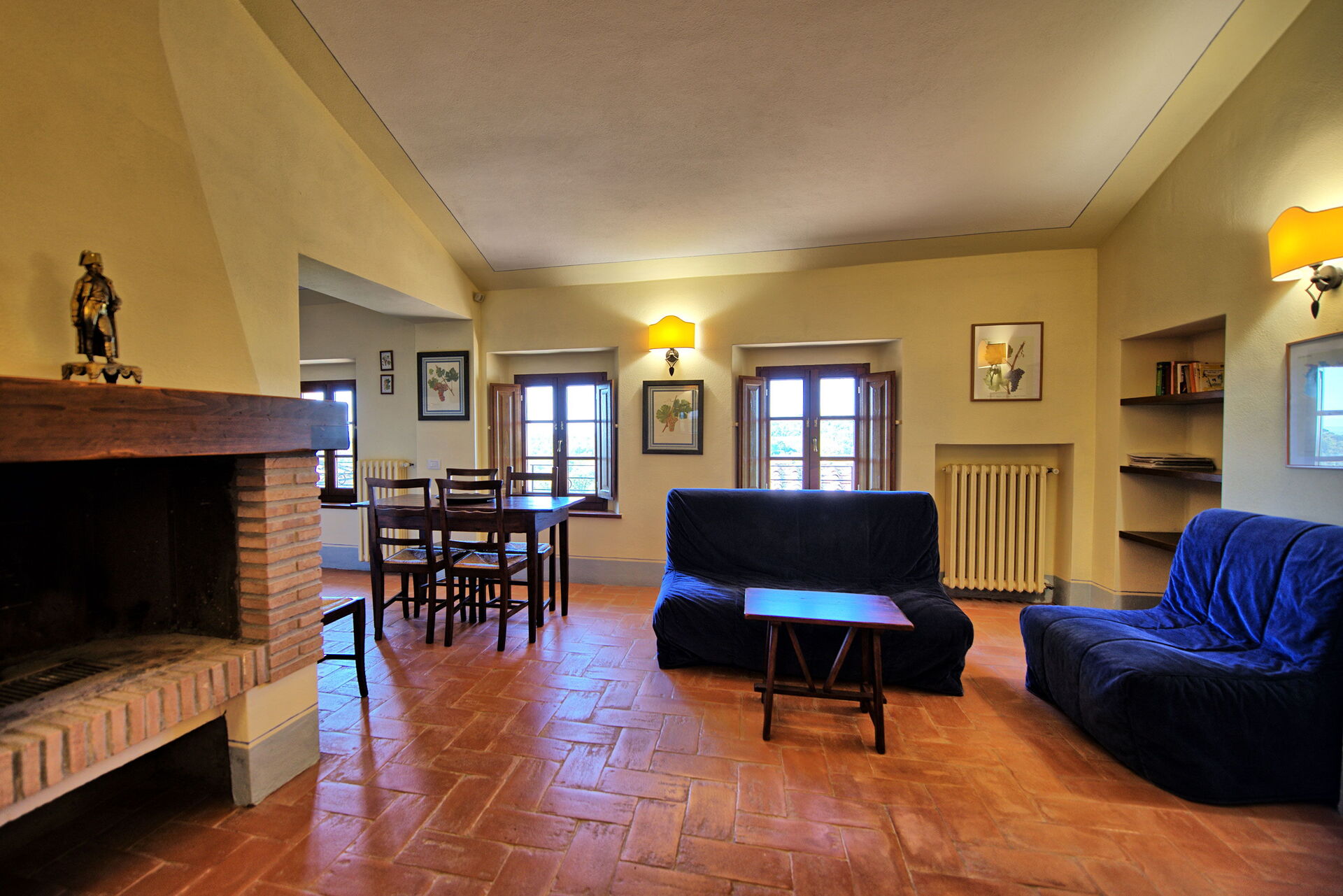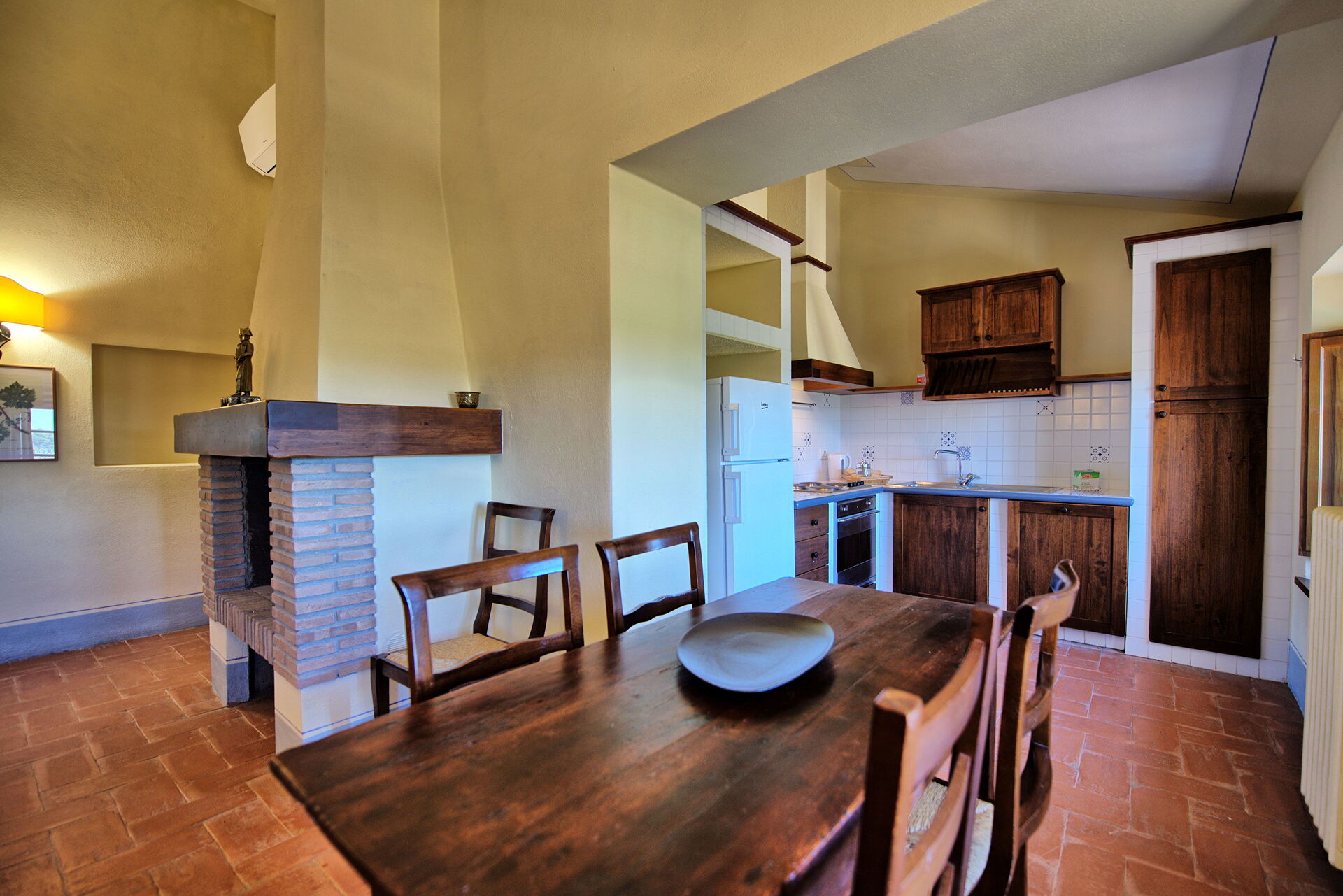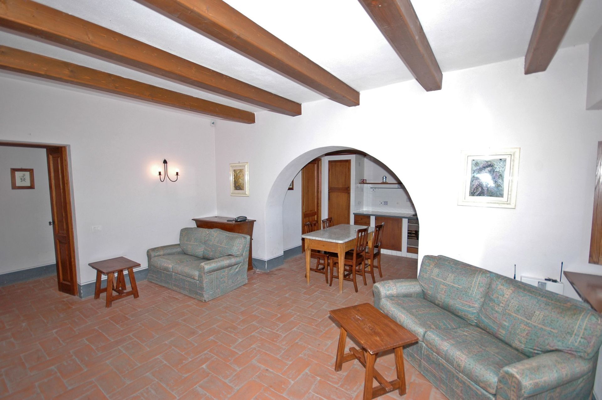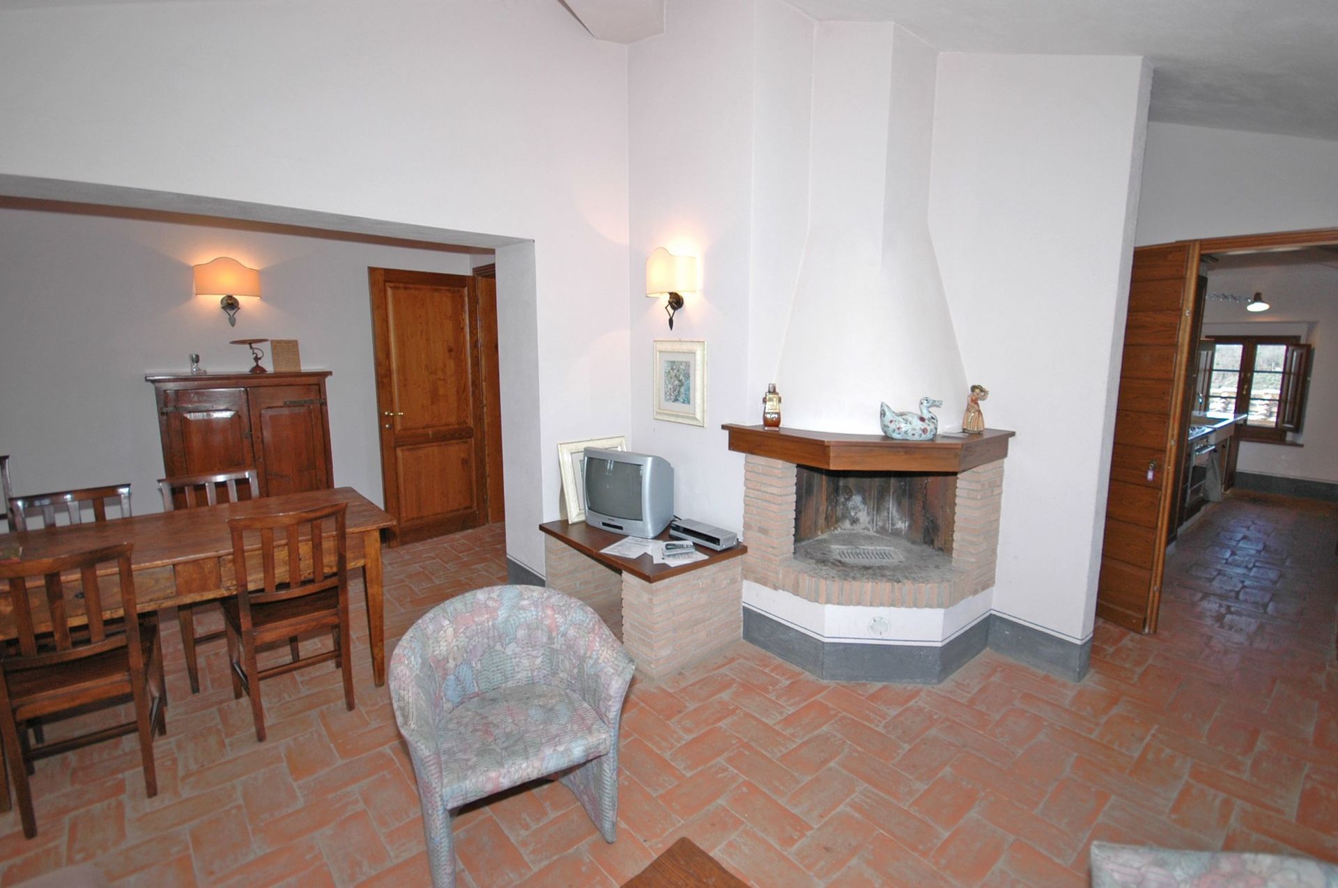 Eine richtig hübsche und gut möblierte, geräumige Wohnung mit zwei Bädern in einer ursprünglichen toskanischen Gebäudestruktur! Die Lage ist sehr ruhig, zwischen Rebbergen und Olivenhainen und Wäldern, mit schöner Aussicht über die Hügel und ganz knapp, aber doch sichtbar, die Silhouette der Kulturstadt Siena.