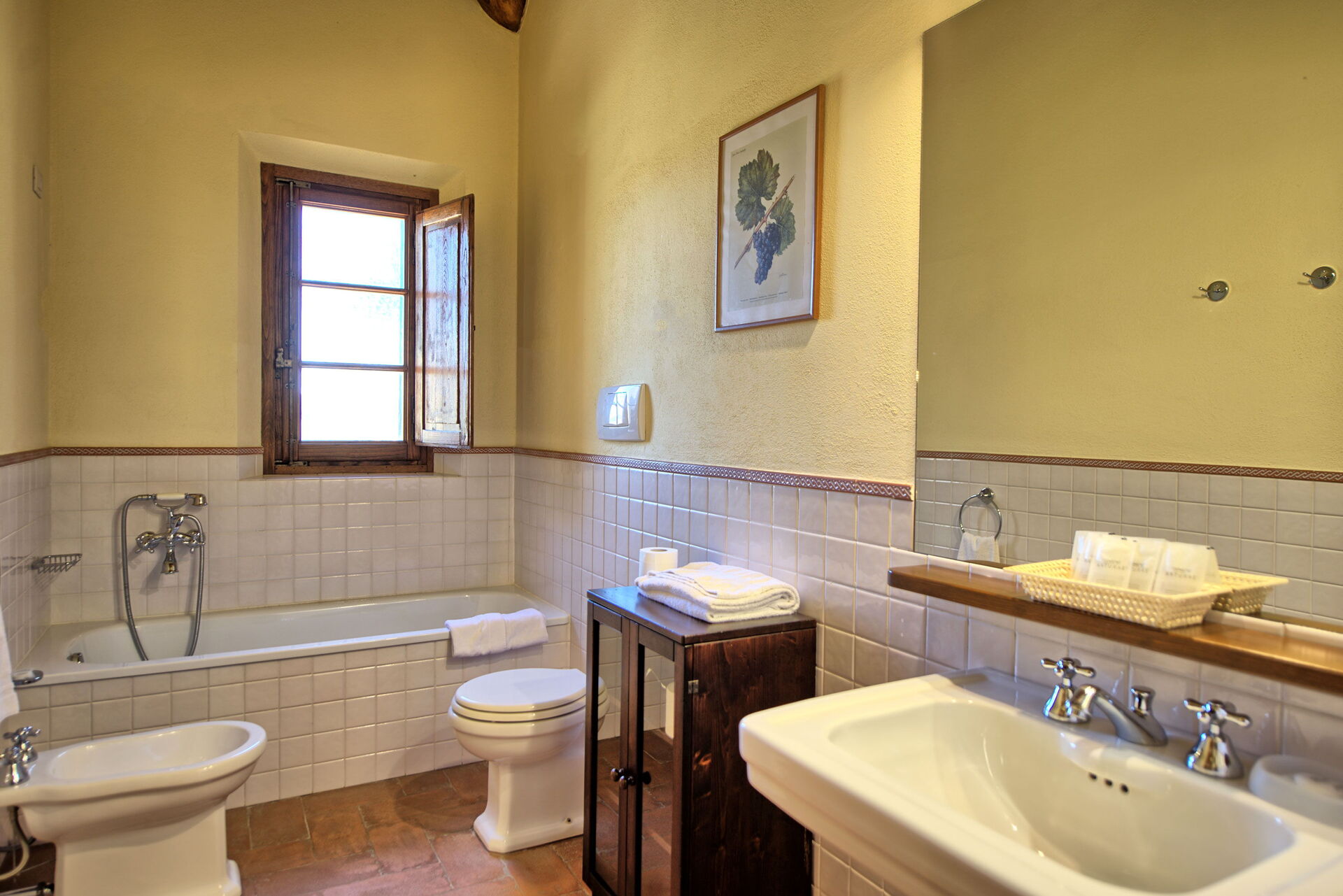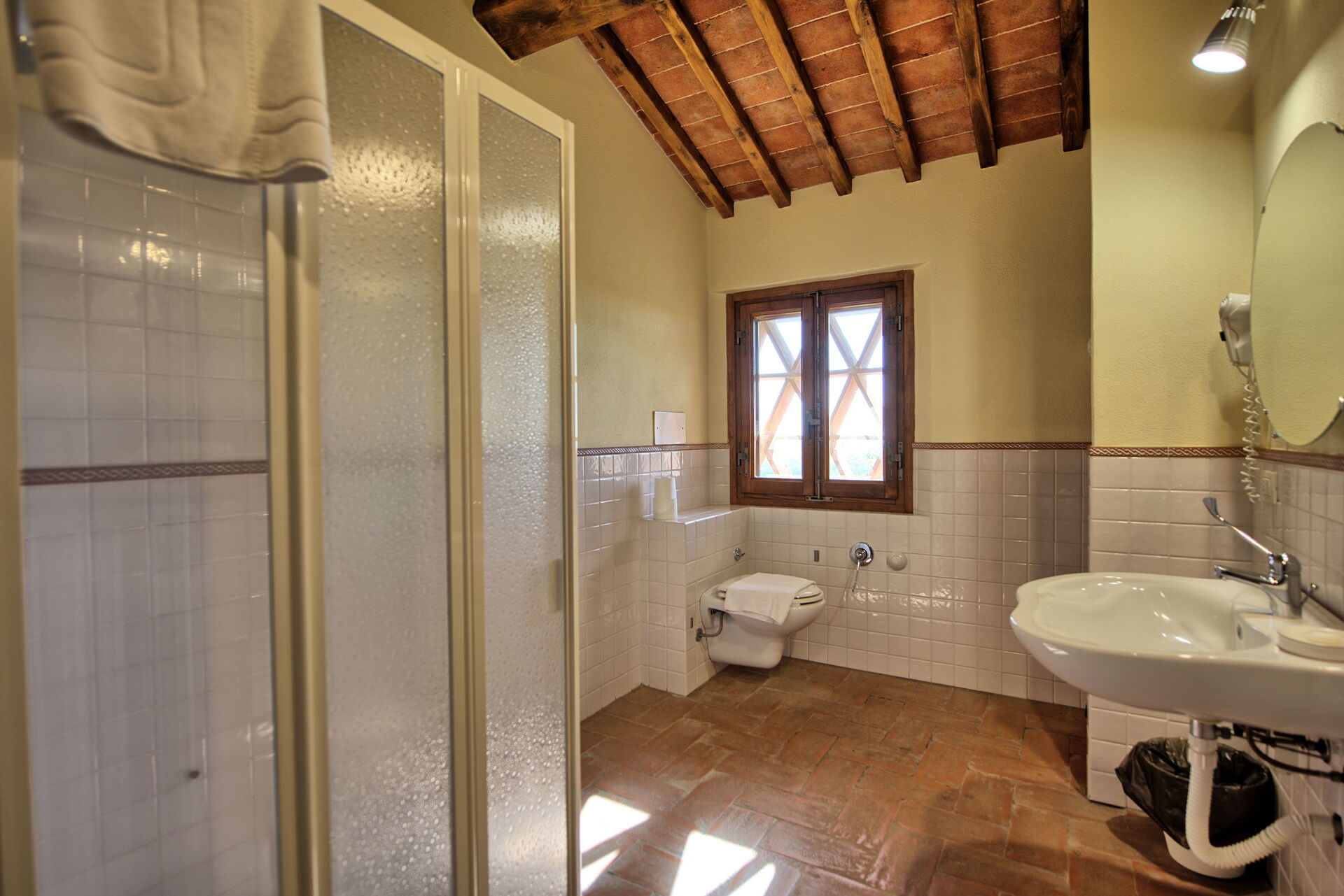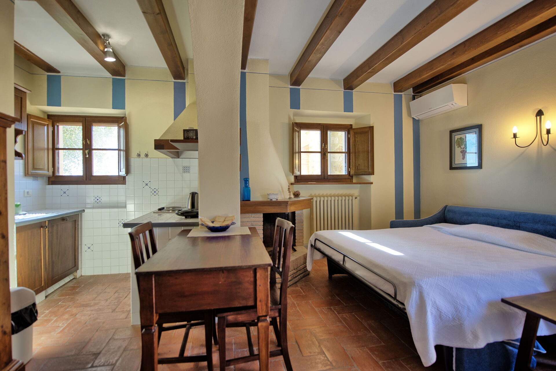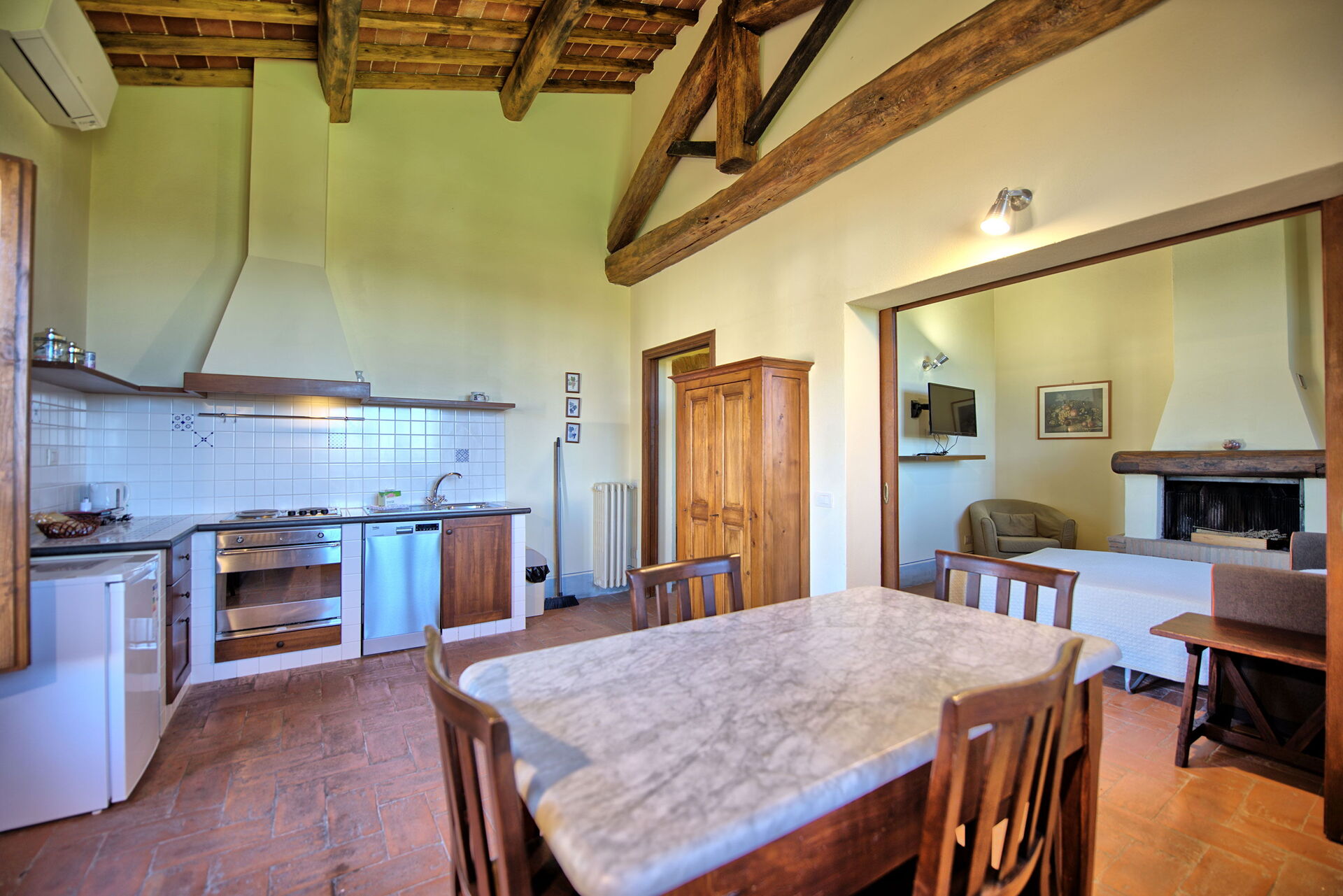 Nice building with typical tuscany view. Everything according to the discription on the dedicated webside. We were there in August so air conditioning would be helpful. But the real disadvantage were very thin walls between the appartments in one building - we could hear almost every sound of our neighbor.