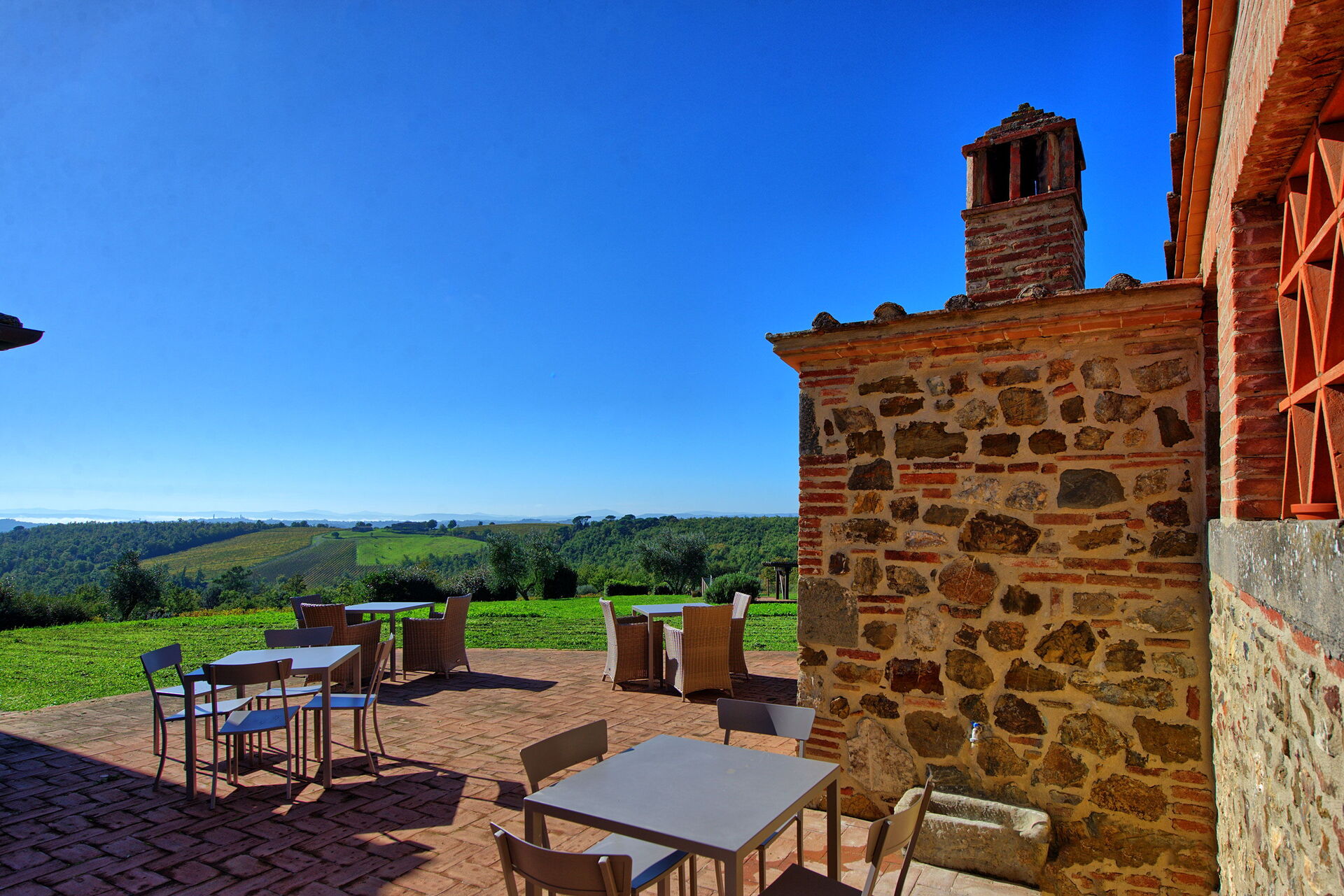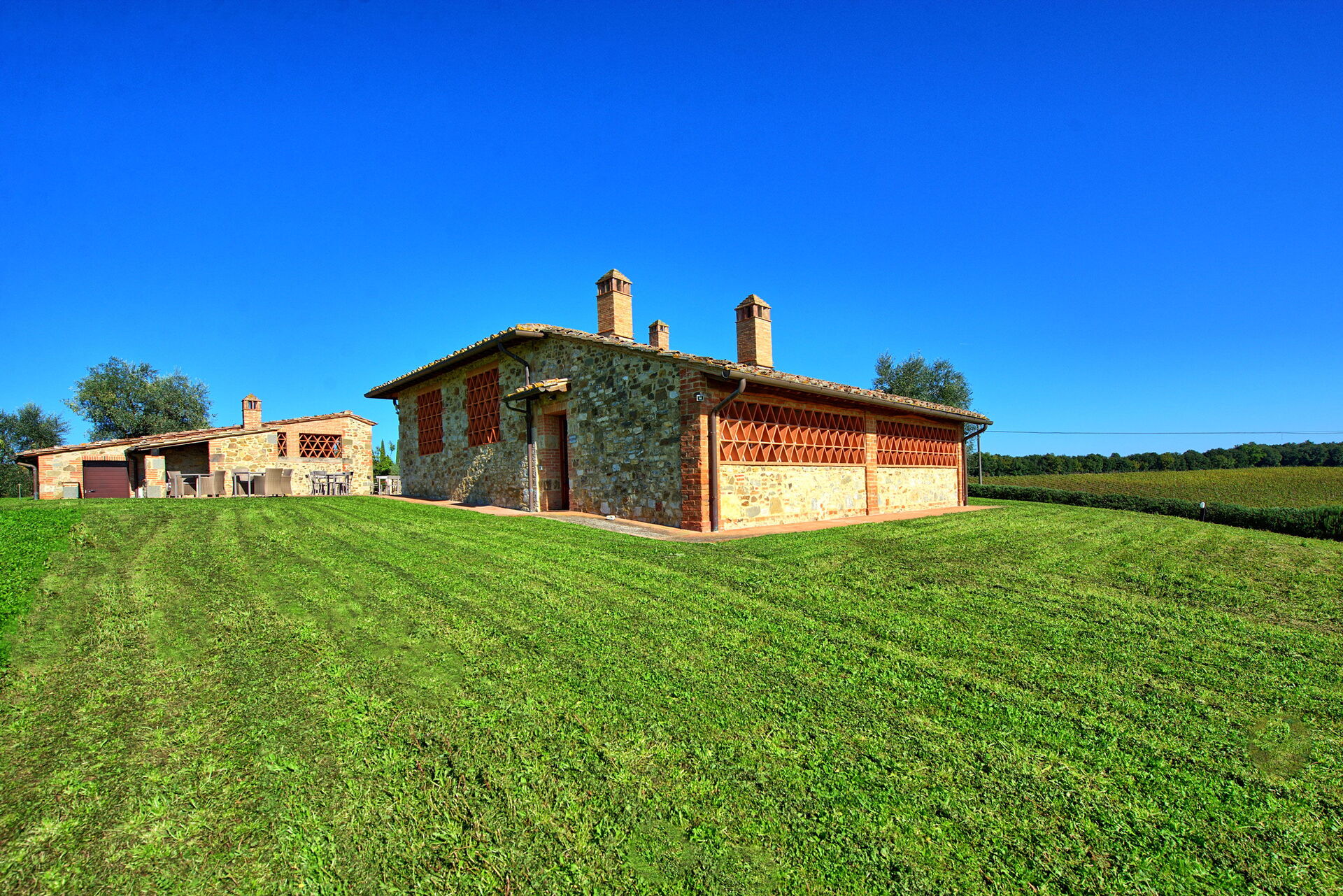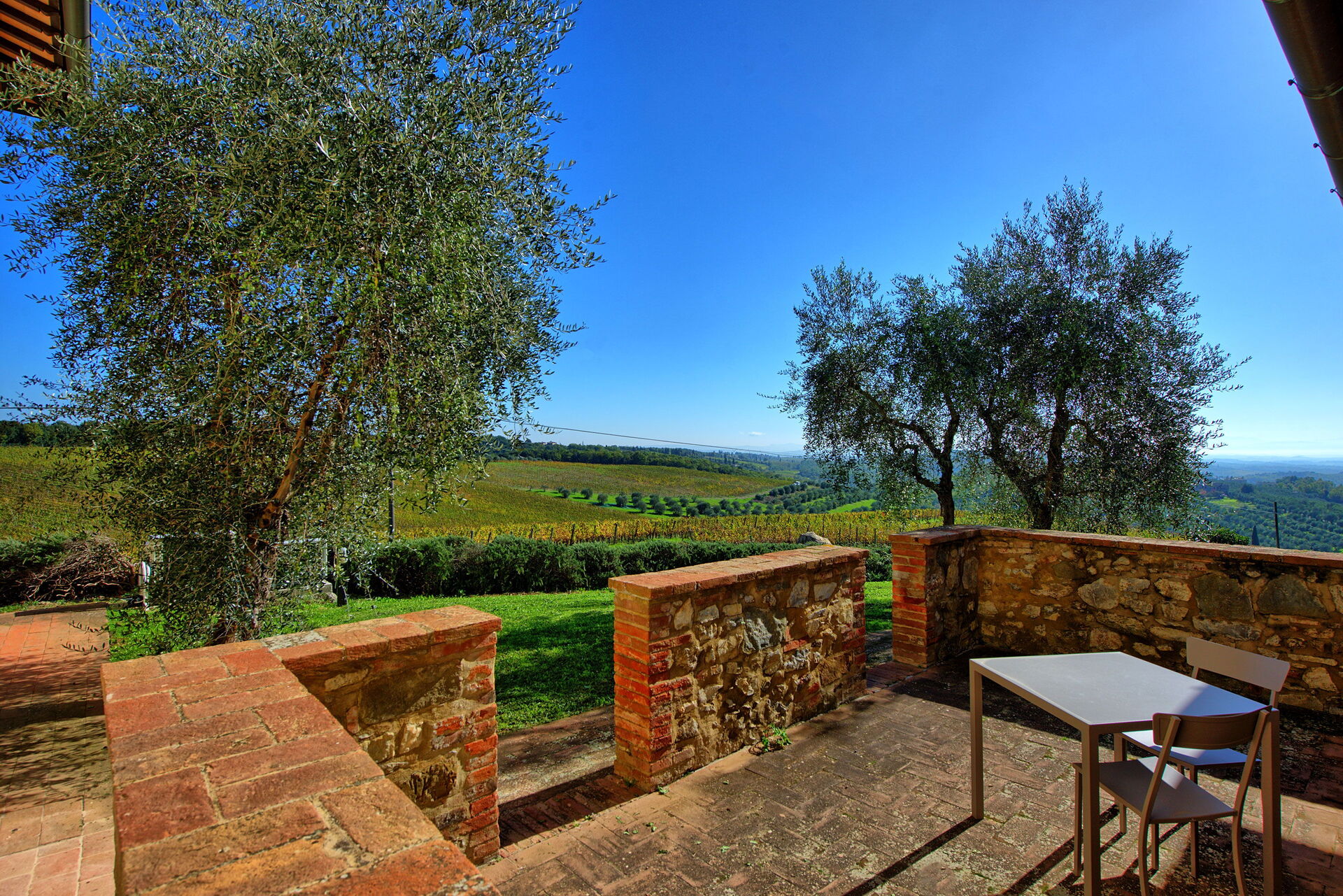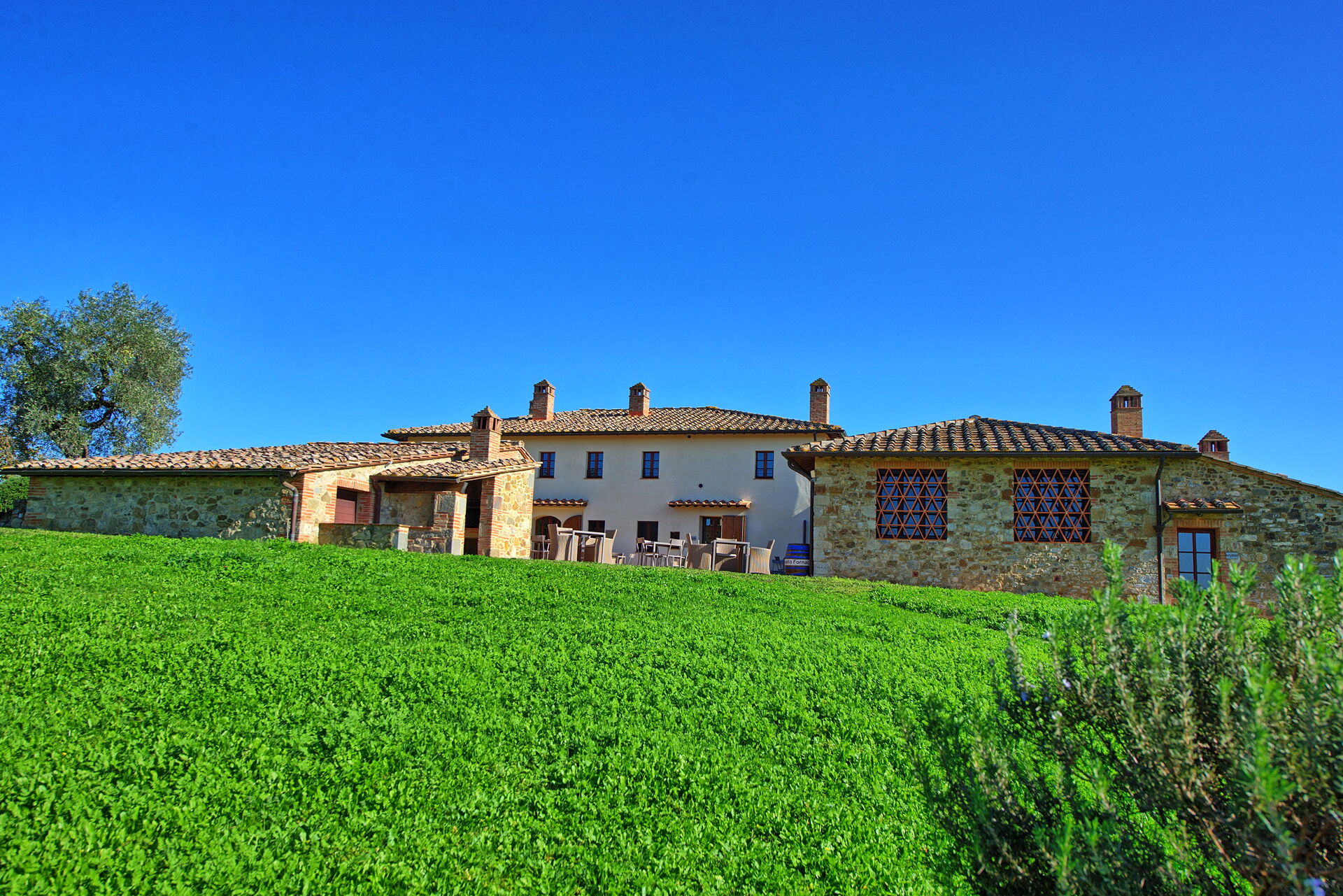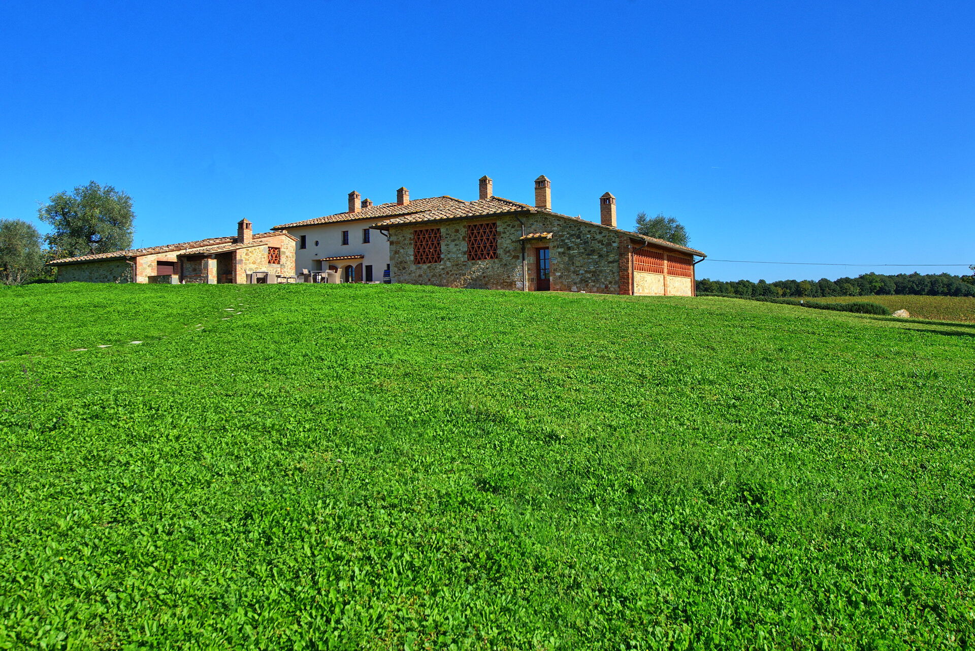 [English translation courtesy of Easy Reserve] Magnificent typical Italian house. Stunning view in all directions. Very tranquil. Well maintained swimming pool. Ample terraces, (reclining) chairs, tables, lights. Very clean and cozy. Good beds. A big advantage is that you can book random days. Their own wine is not cheap, but delicious. Fifteen minutes drive from Siena where you will find also a big supermarket which is close to one of the escalators.