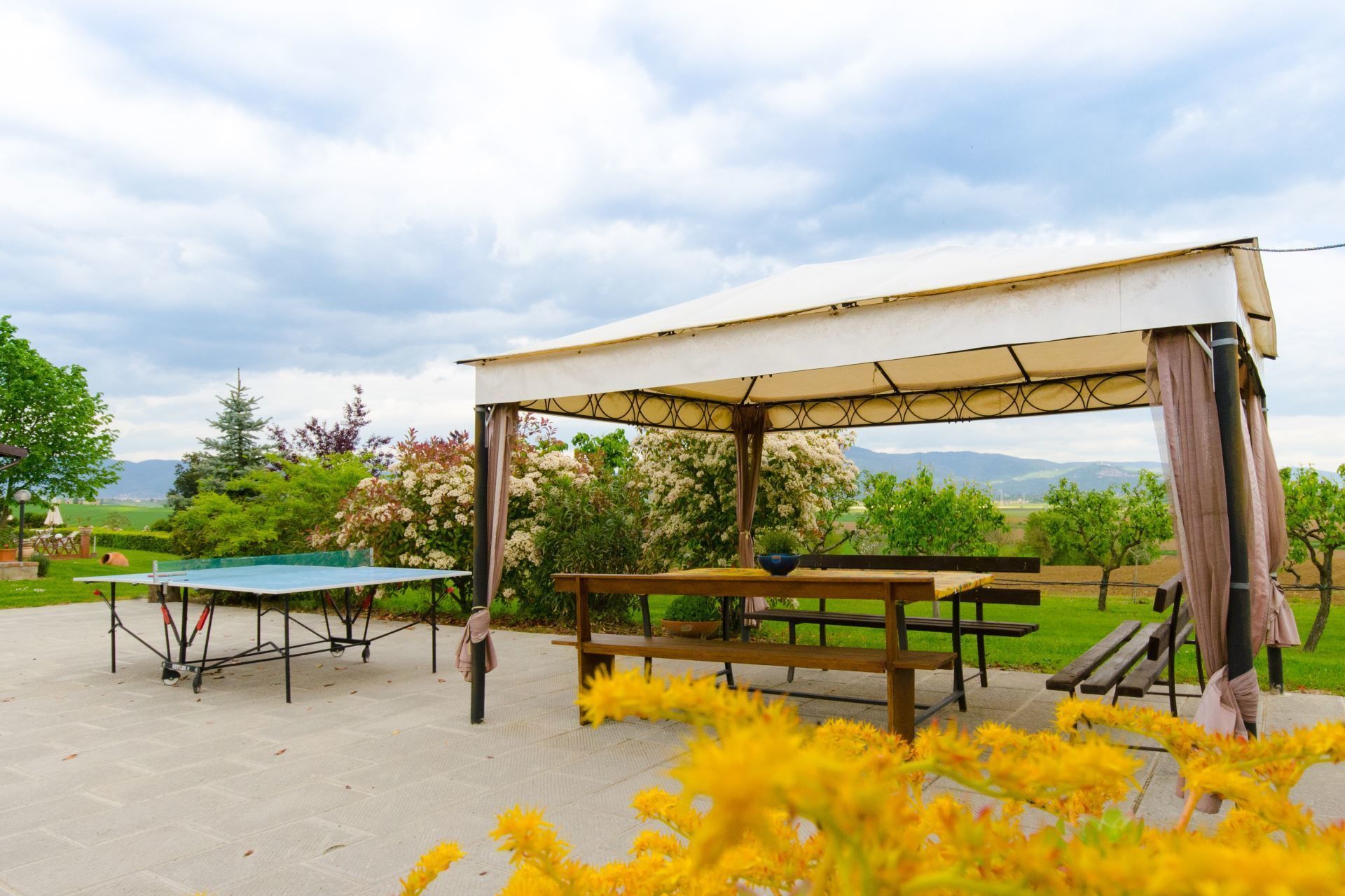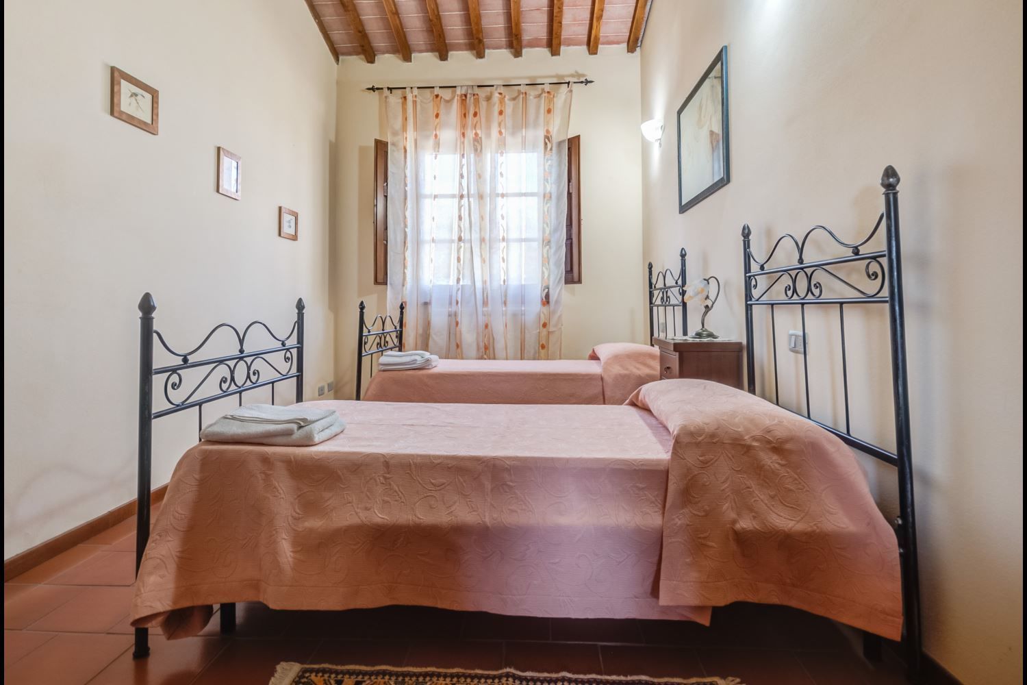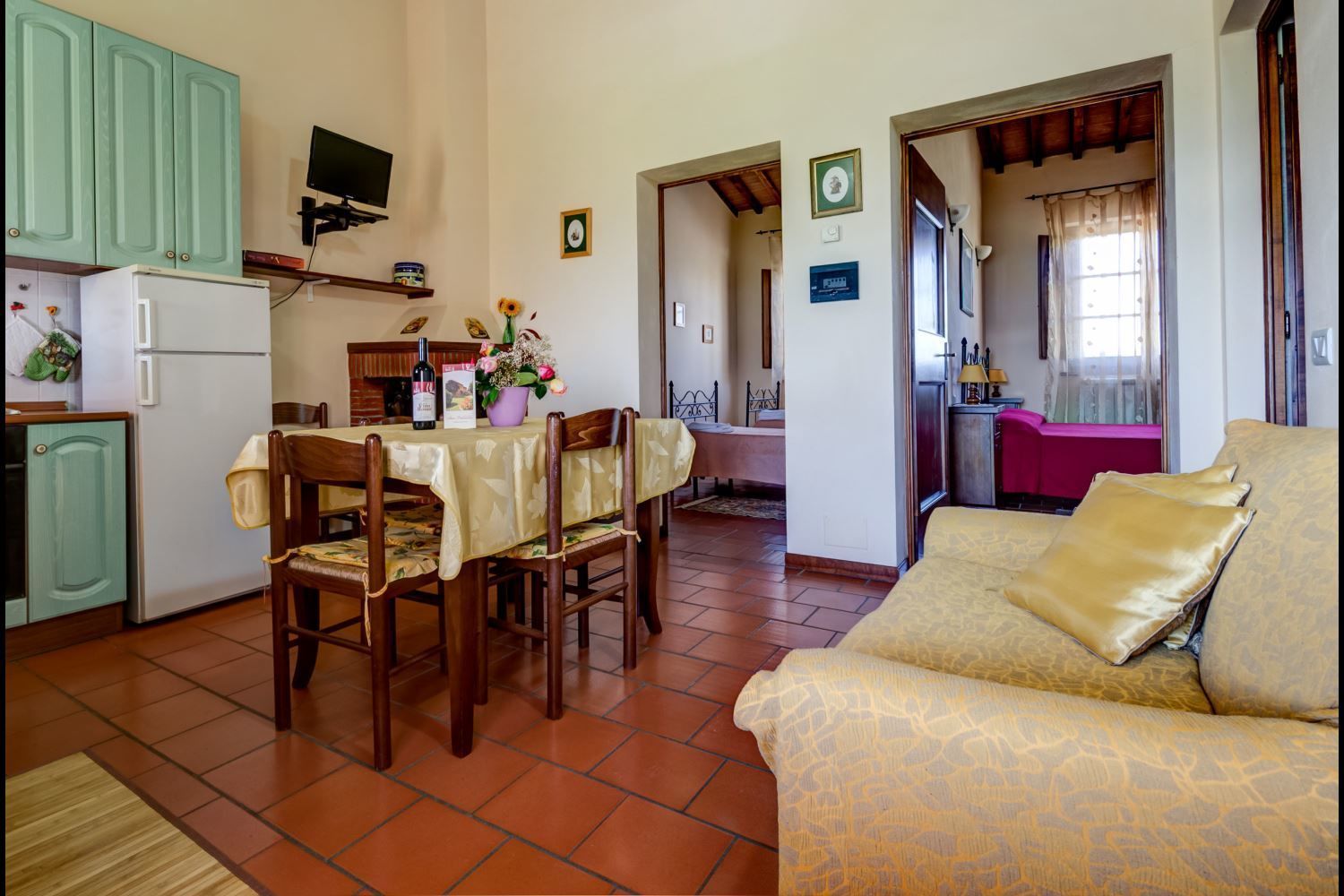 Ground floor apartment suitable for disabled persons, with living- dining room with kitchenette and fireplace, double bedroom, twin bedroom with the possibility to add an extra single bed, bathroom with shower. Porch equipped with outdoor furniture.