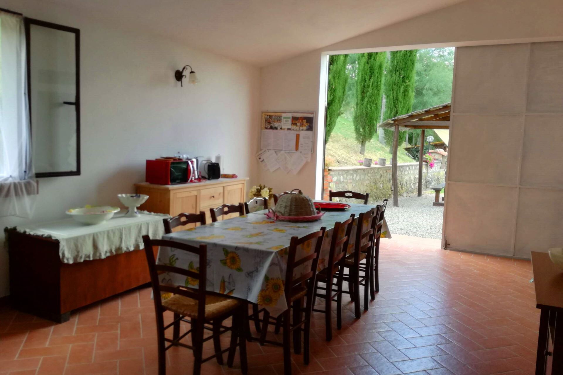 In the large green area around the farmhouse you will find the beautiful swimming pool, completely fenced in and for private use (size 10x5 metres, depth 1.10-1.50 metres - open from 01st May to 30th September). In the garden, for your dinners in the open air with your family and friends there is an equipped gazebo, outdoor furniture and barbecue. On the ground floor a comfortable common room equipped with a microwave, toaster, kettle, blender and freezer, perfect for breakfast or an evening with friends.