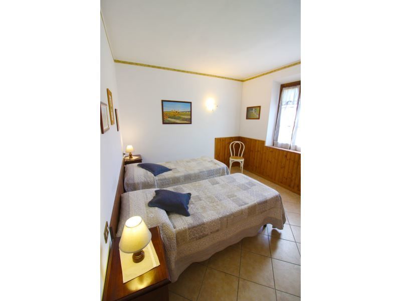 First floor apartment with entrance from external staircase, consisting of large living-dining room with kitchenette, fireplace and sofa, double bedroom, twin bedroom and bathroom with shower.