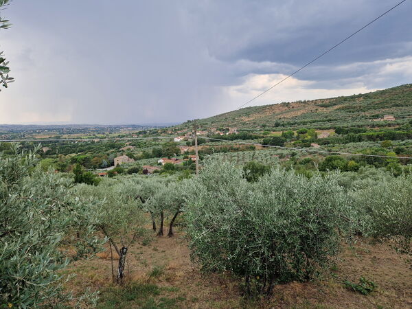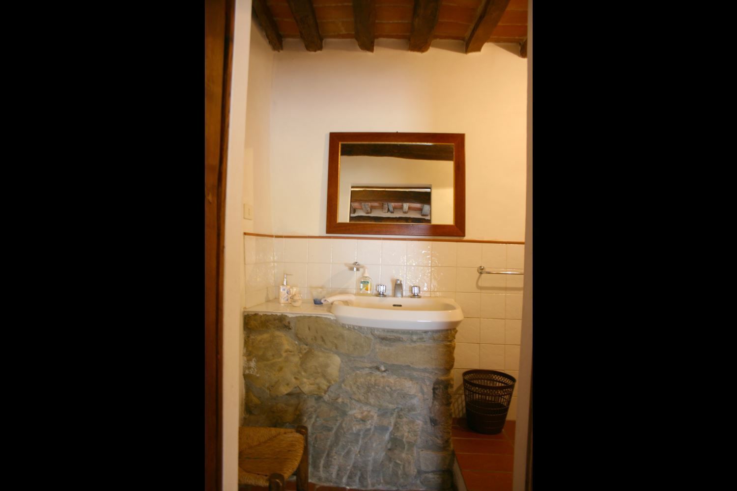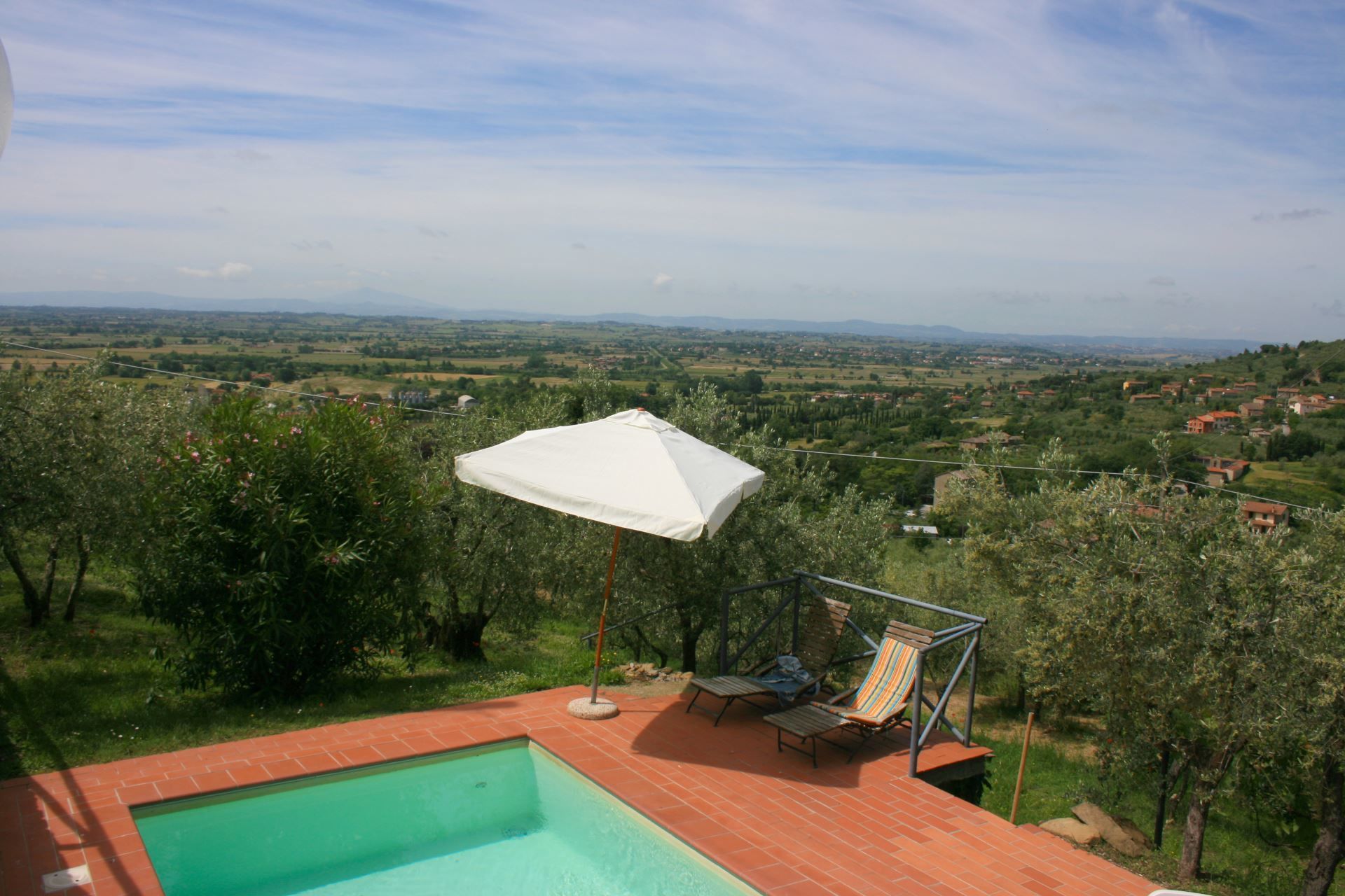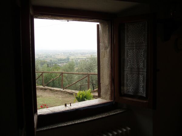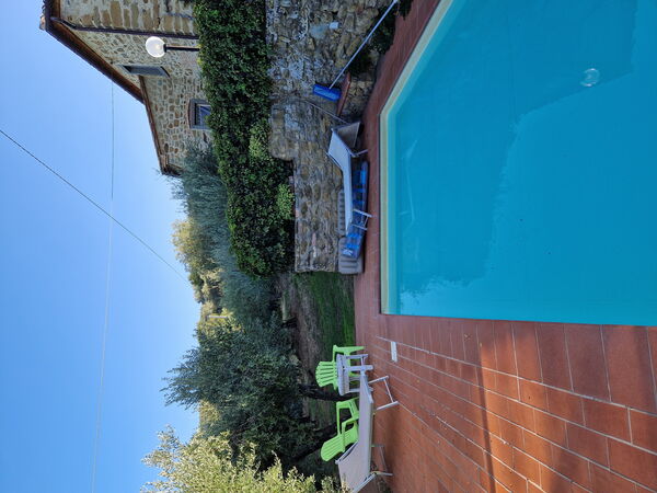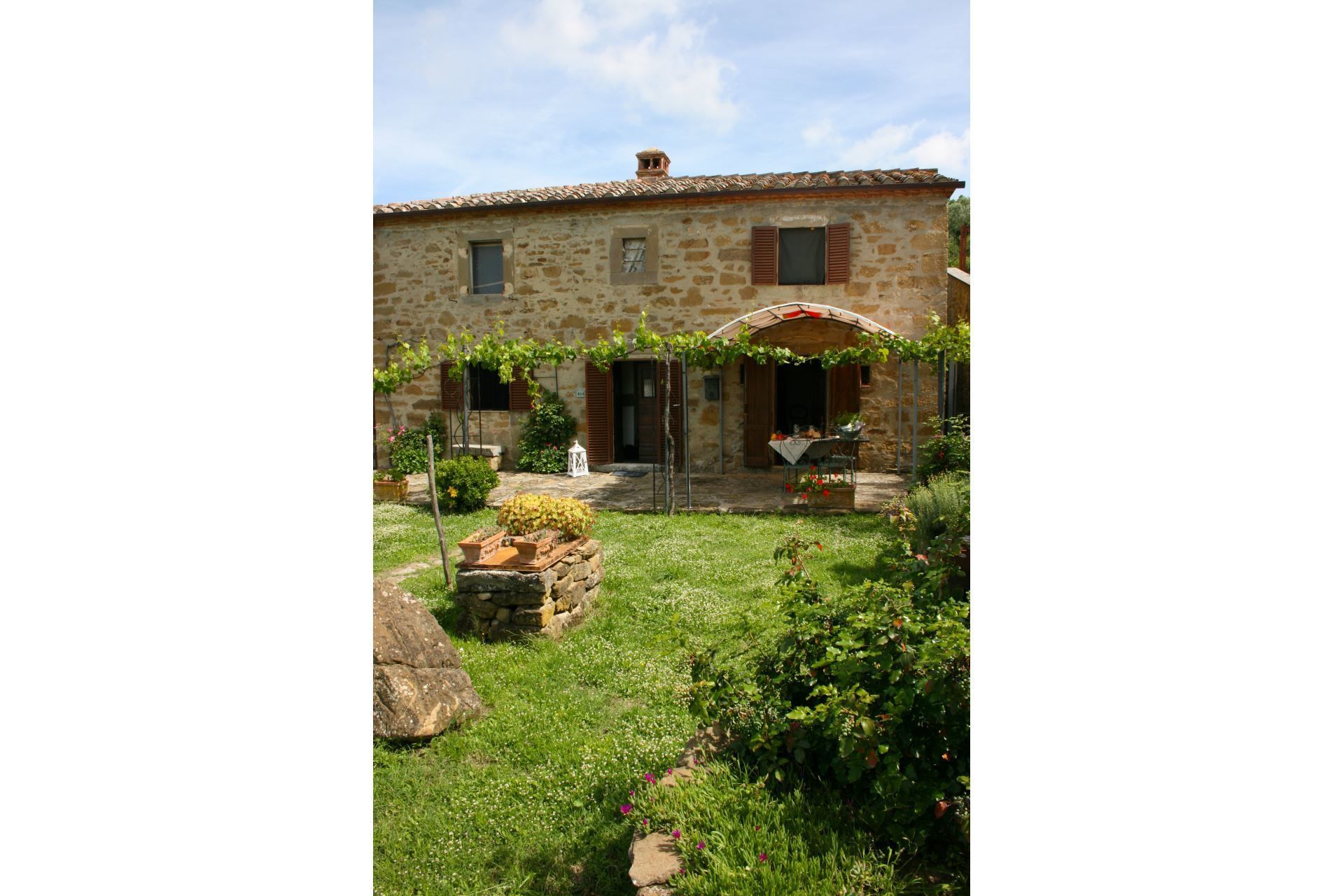 Picture this, if you will: a pretty villa in a small town with the lush greenery of trees and views over the vineyards and rolling hills of the Tuscan countryside all around, a front entrance opening into a little court with flowers and trees, climbing blooms and vines winding up the sunny yellow facade of the villa, green shuttered windows, a romantic balcony on the first floor above the entrance, and a terracotta roof to top it off. This is the dreamy first encounter that guests have when they reach Villa Toppani Del Sodo and this very much sets the appropriate tone for your vacation here.