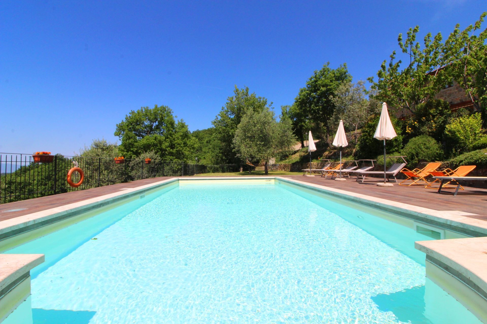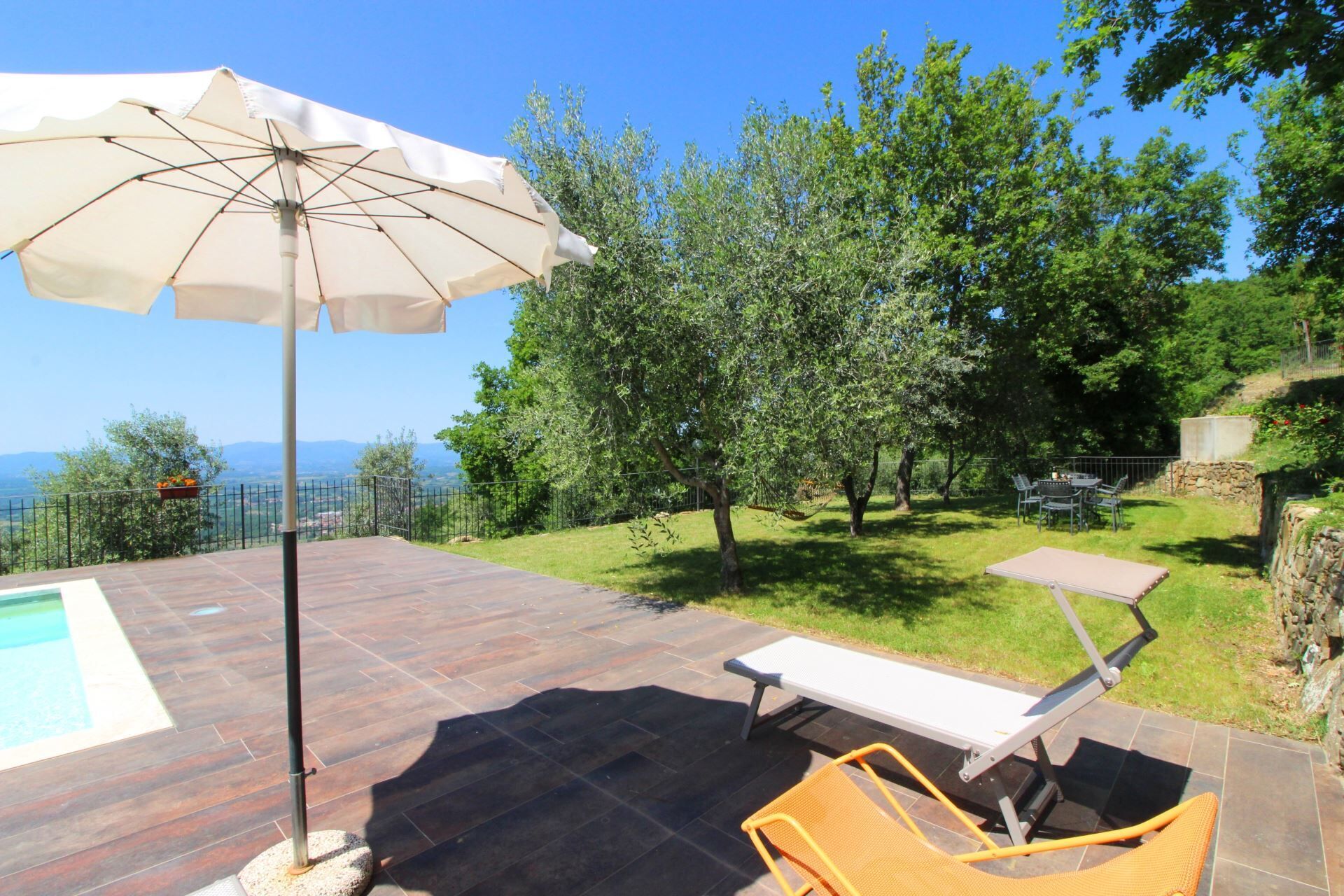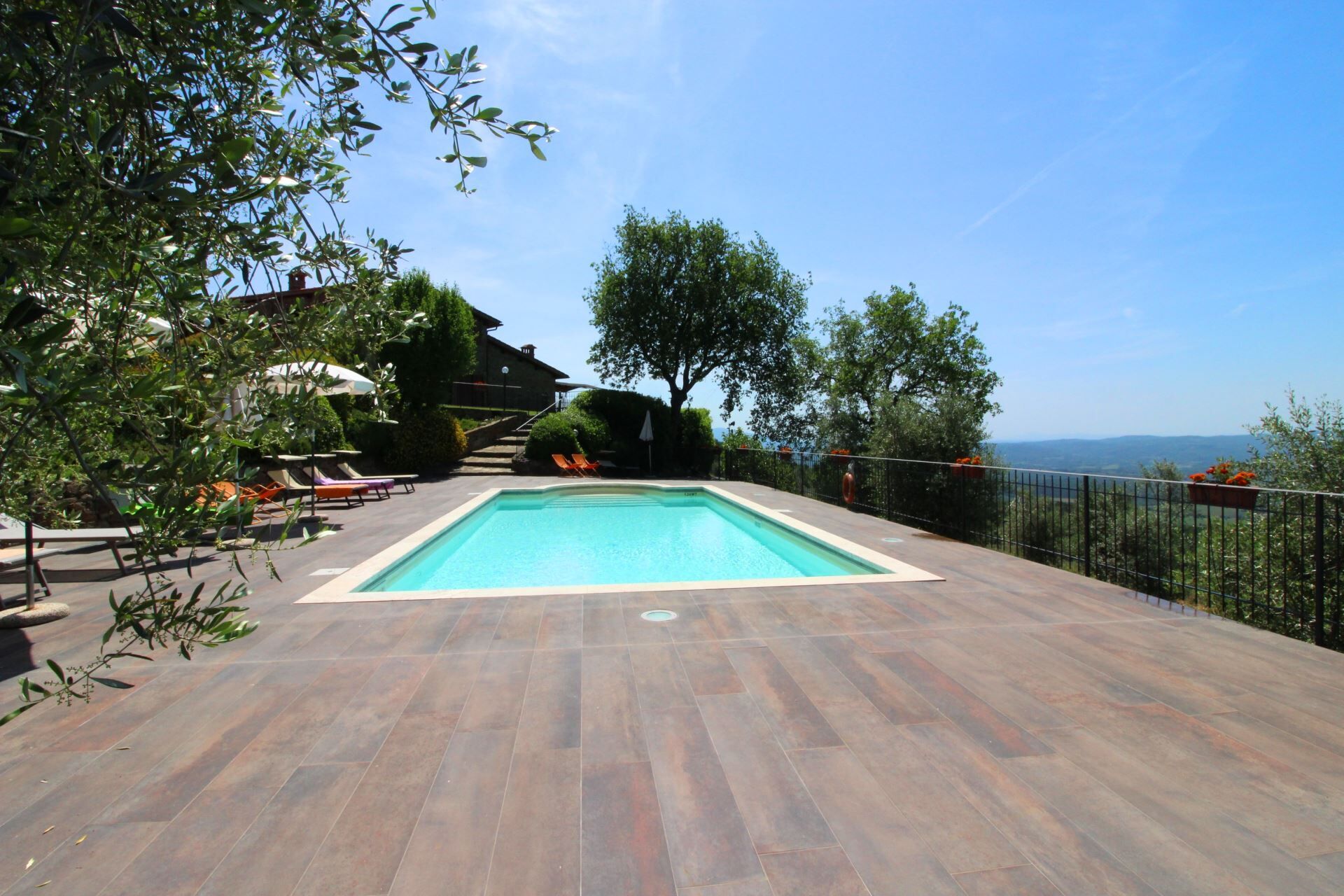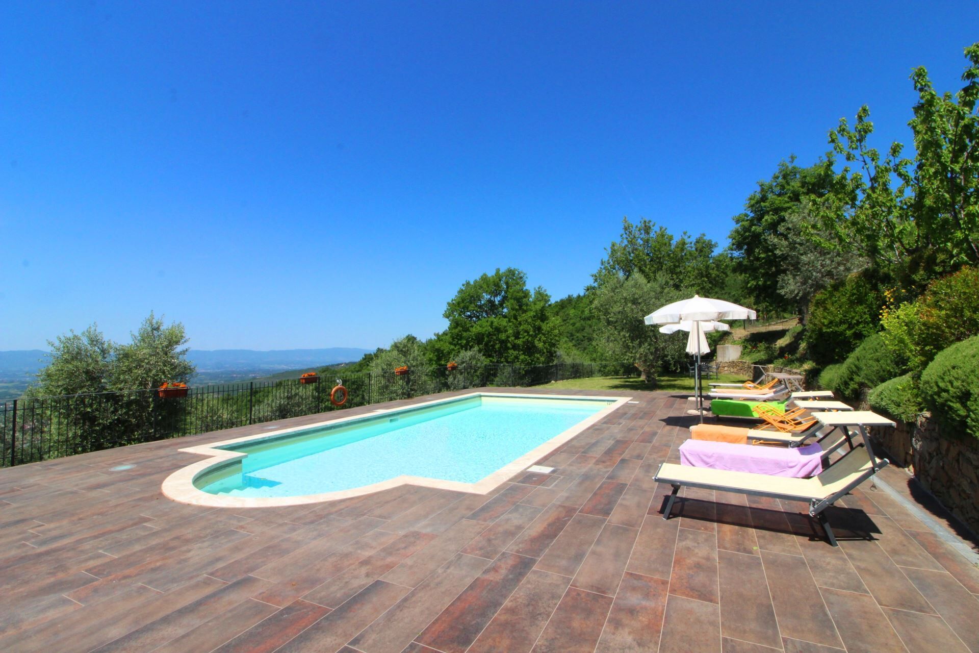 All around the house there is a large garden where each apartment has a private area with a gazebo furnished with table and benches for eating outdoors. Next to the house there is a beautiful panoramic swimming pool completely fenced (size 5x10 m - depth 1.20 m) equipped with solarium, sunbeds and umbrellas and built on a natural terrace that offers a unique view over the Arno valley and the town of San Giustino Valdarno.
