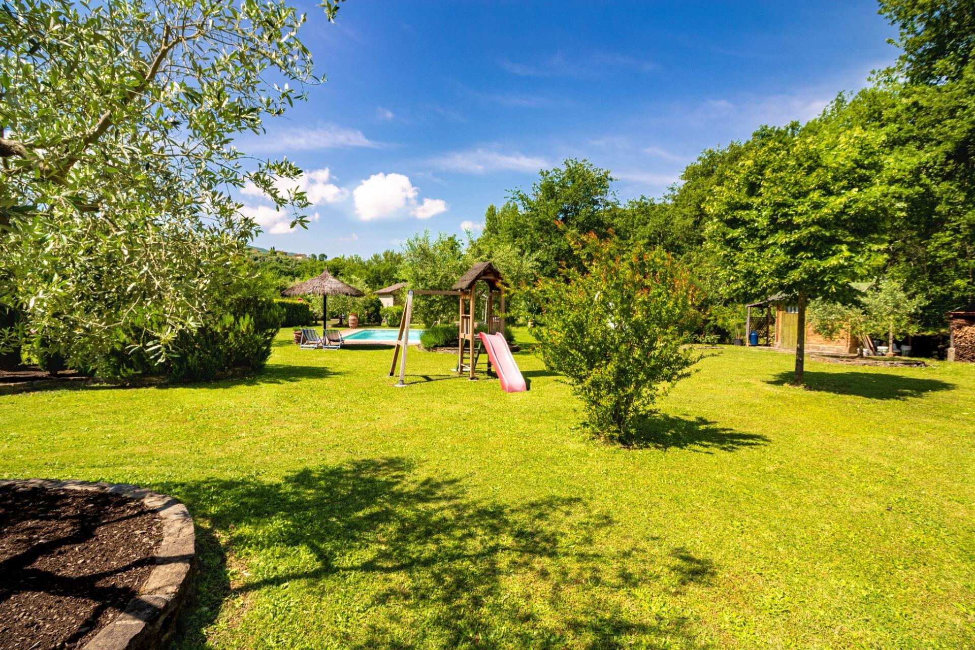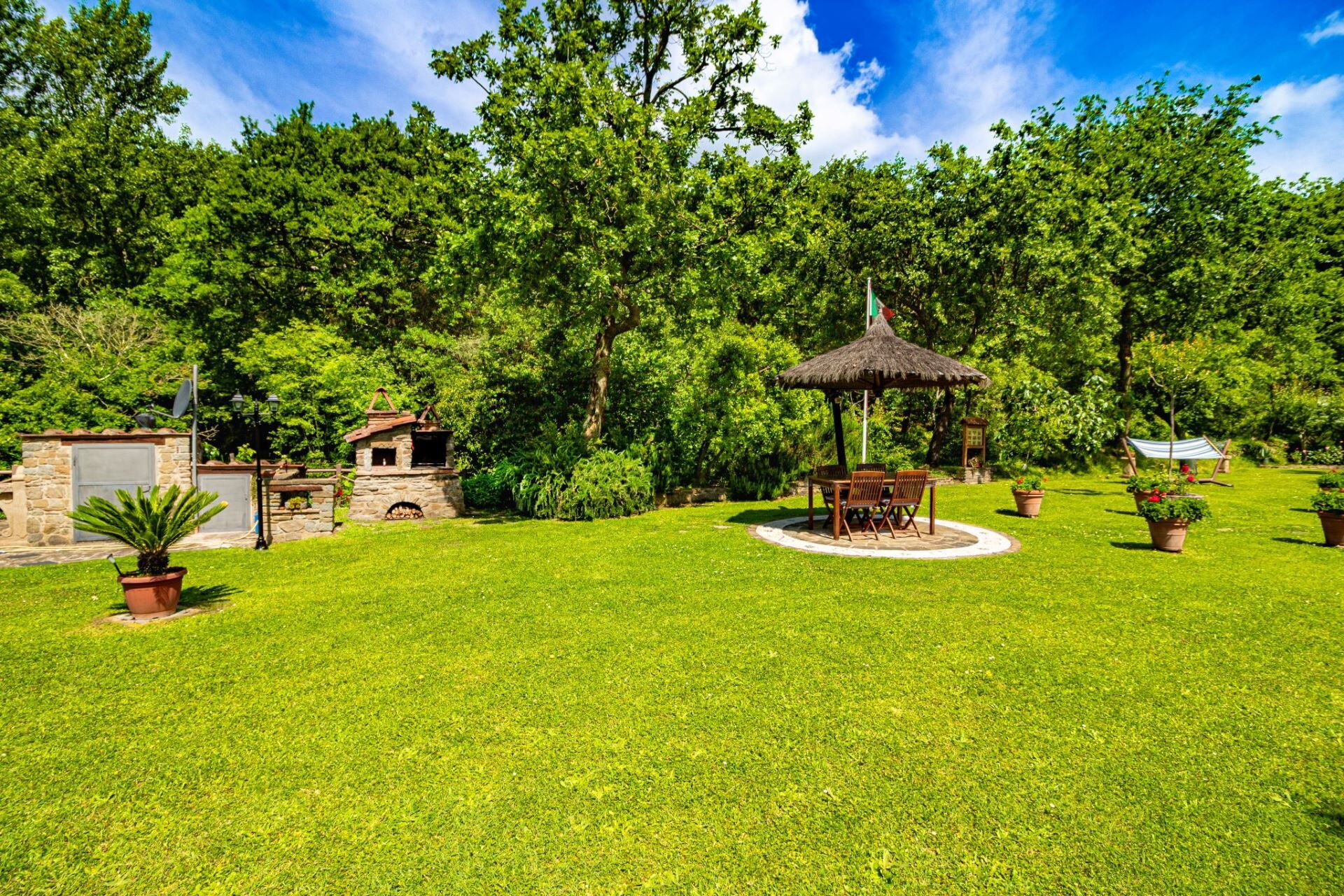 In the wide garden the beautiful swimming pool (size 4x8 m., depth 1,20-1,50 m. - open from 01st May to 30th September) with Jacuzzi corner, barbecue and wood burning oven next to the gazebo and an equipped porch. A few meters from the house passes a panoramic side road that crosses the hills and connects Castiglion Fiorentino to the town of Cortona and the nearby region of Umbria. The property accepts small size pets.