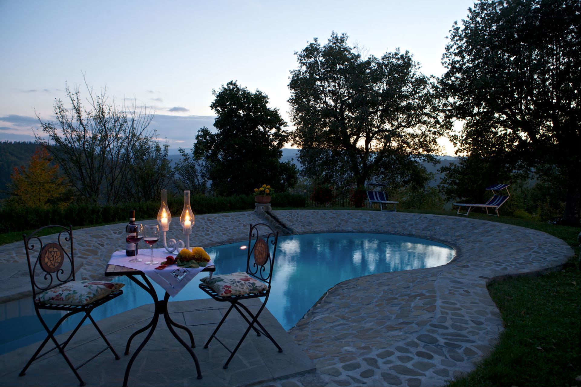 In front of the house, in a sunny and panoramic position, you will find the swimming pool (size m. 10x5, depth m. 1,10-1,50), private and completely fenced, with the features of a small lake, in order to be able to fit gently into the landscape of the Natural Park.