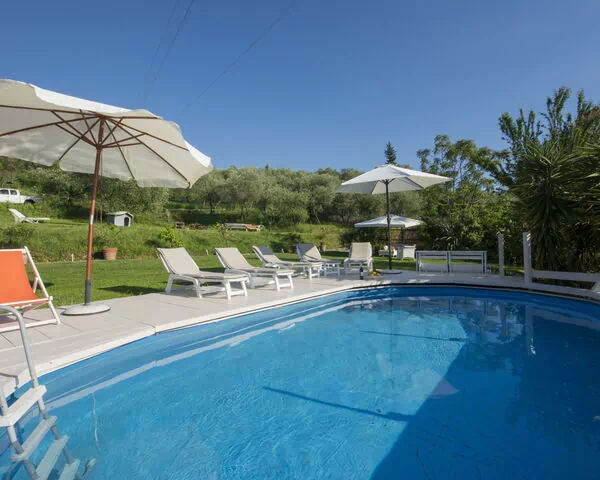 The outdoor spaces of "Olivo" are among its most captivating features, inviting guests to make the most of the Tuscan climate and the property's generous natural surroundings. The terraced garden, set within the broader 10,000 m2 natural state property, offers a wonderful landscape to explore, with gently sloping levels that reflect the authentic character of the Italian countryside. The private garden of 500 m2 provides an intimate and well-maintained green space where guests can enjoy moments of relaxation in complete privacy. The swimming pool, measuring 7 x 3 m with a depth of 120 cm, is a seasonal facility available from May through October, perfect for cooling off during the warm summer months. The terrace of 50 m2 is thoughtfully equipped with garden furniture, creating an inviting setting for al fresco meals, morning coffee, or simply enjoying the peaceful atmosphere of the surrounding landscape.