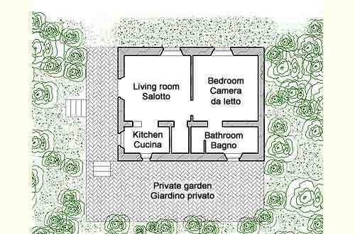 Small cottage (once a one-room schoolhouse) just outside the castle gate. No stairs.
