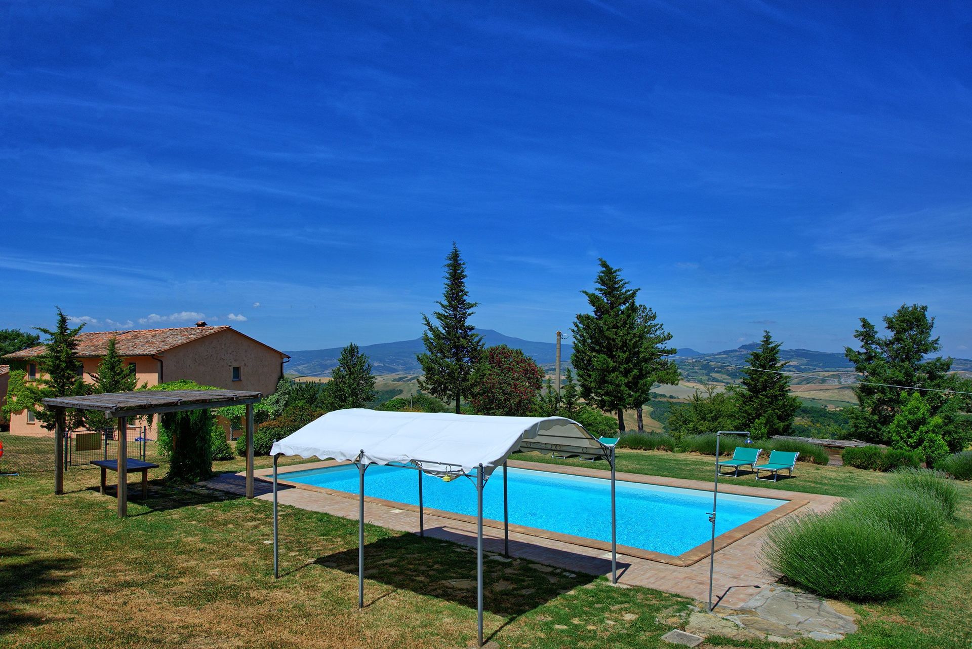 The property provides panoramic country views and the interiors have been carefully designed to offer a pleasant holiday in one of the prettiest areas of Tuscany.