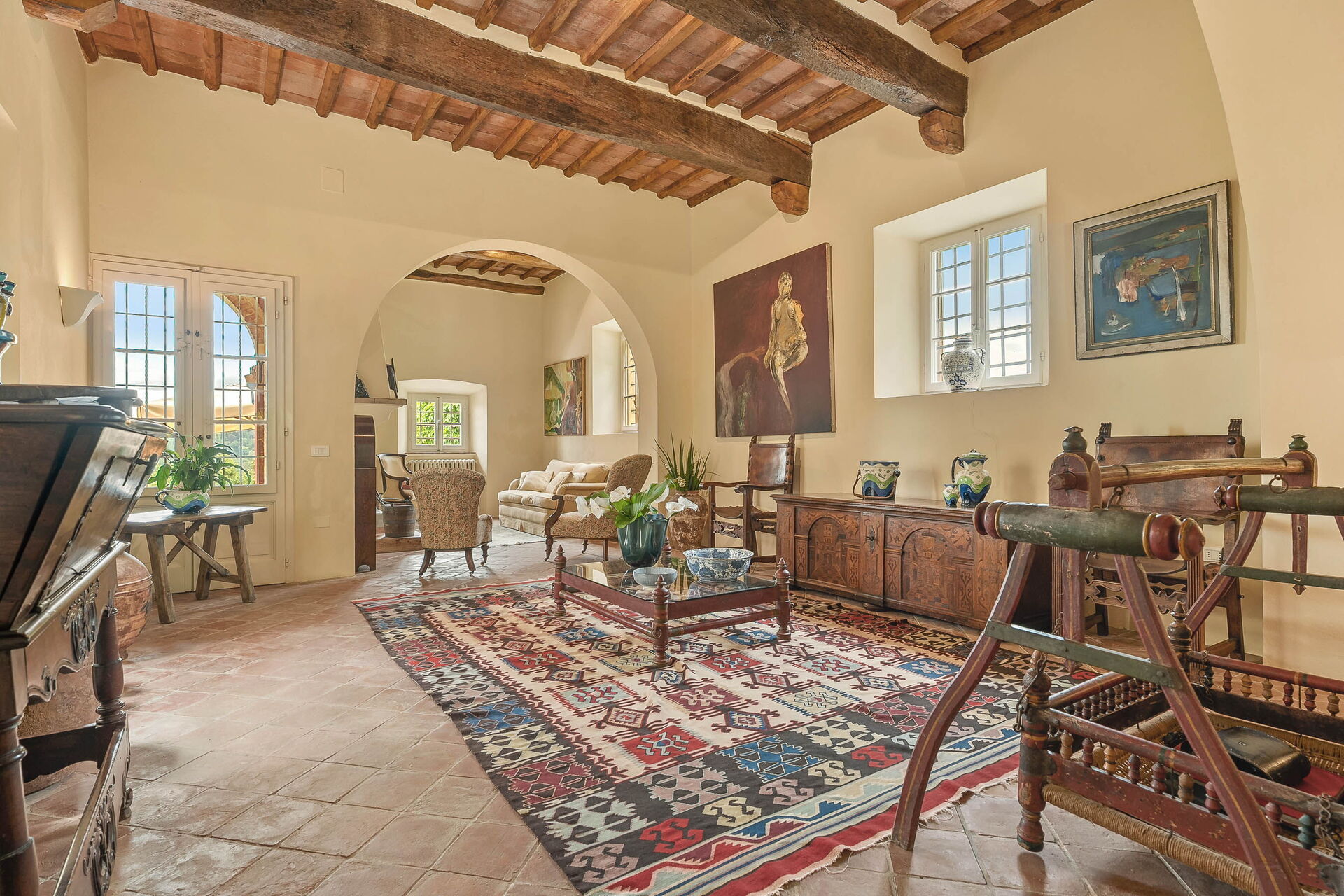 The property consists of a main house and a guest house. The main entrance to the property leads through a shady courtyard and covered loggia to a large terrace enjoying wonderful views over the landscape. Part of the large garden is an olive grove and the swimming pool (12x6m) has been placed in a spectacular position. There is also an original bread oven which can be used for pizzas and barbecues too.