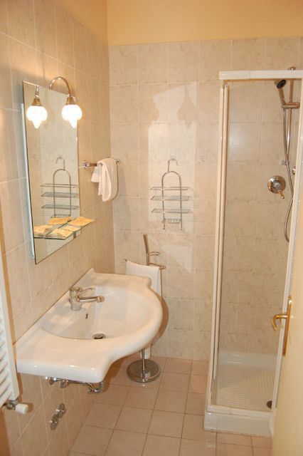 Room with double bed (air conditioning) and private bathroom with shower. First floor