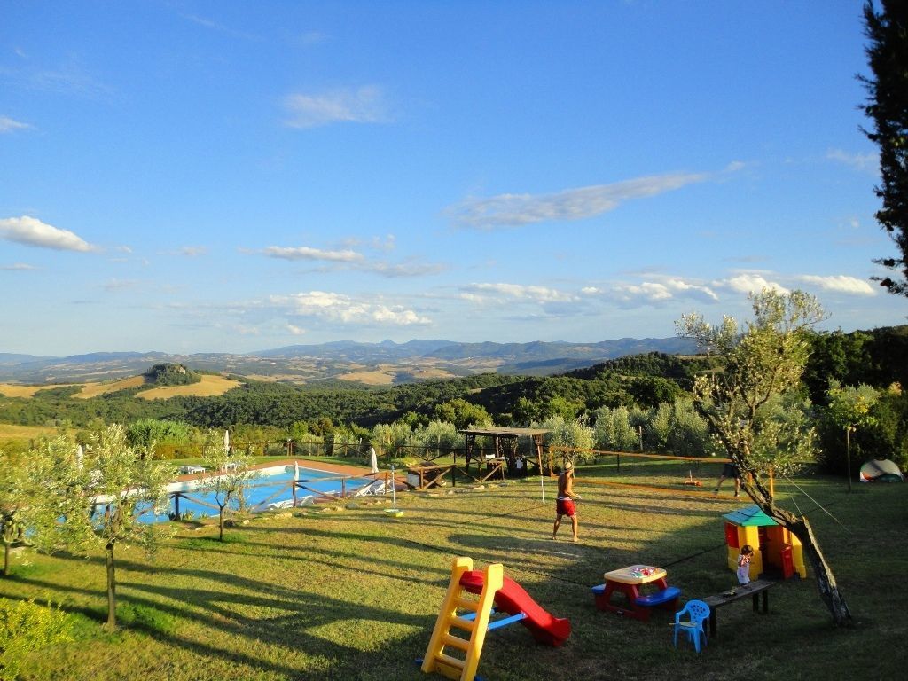 It has also a private garden area with wooden table, benches and sun umbrella.