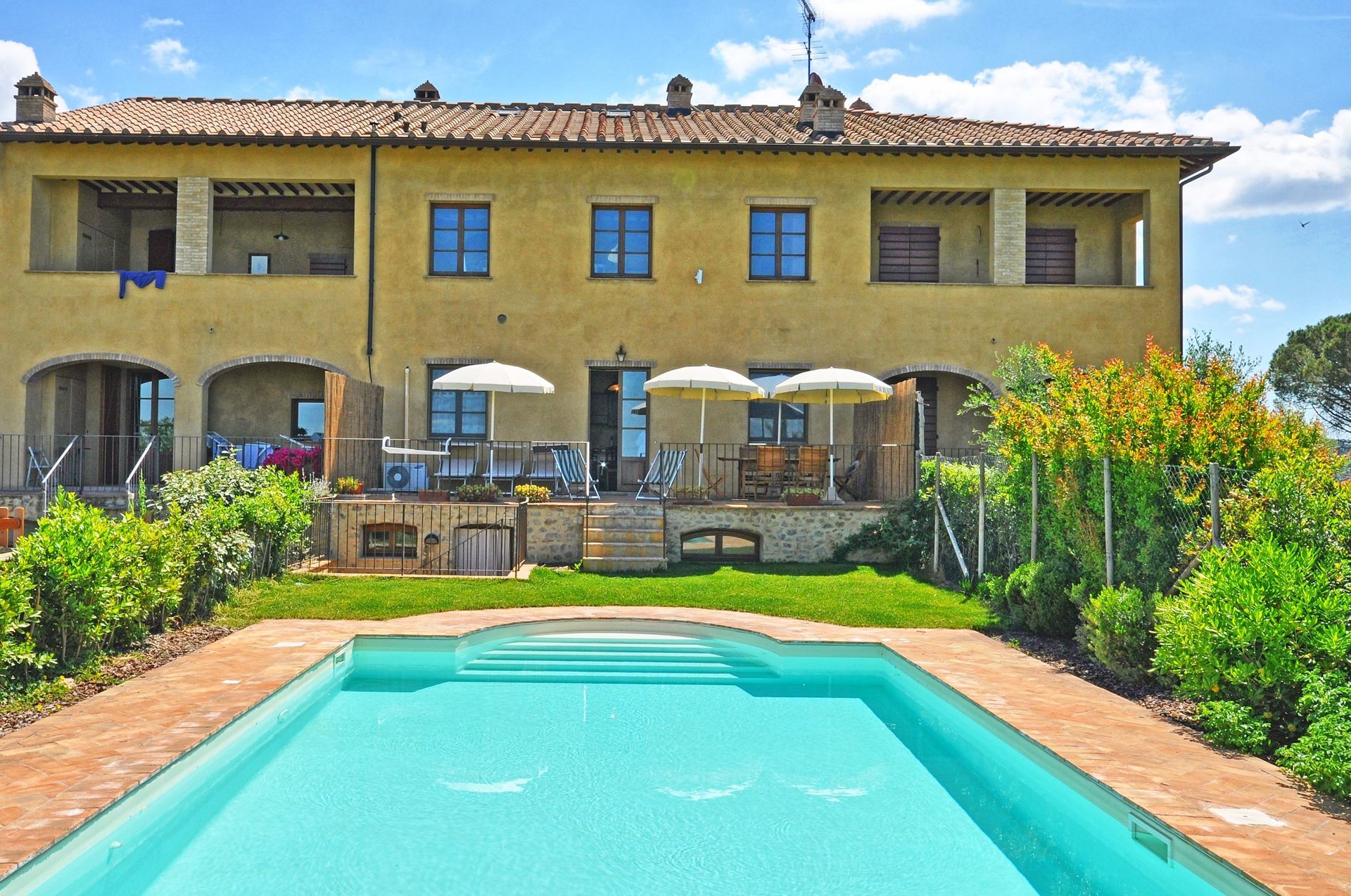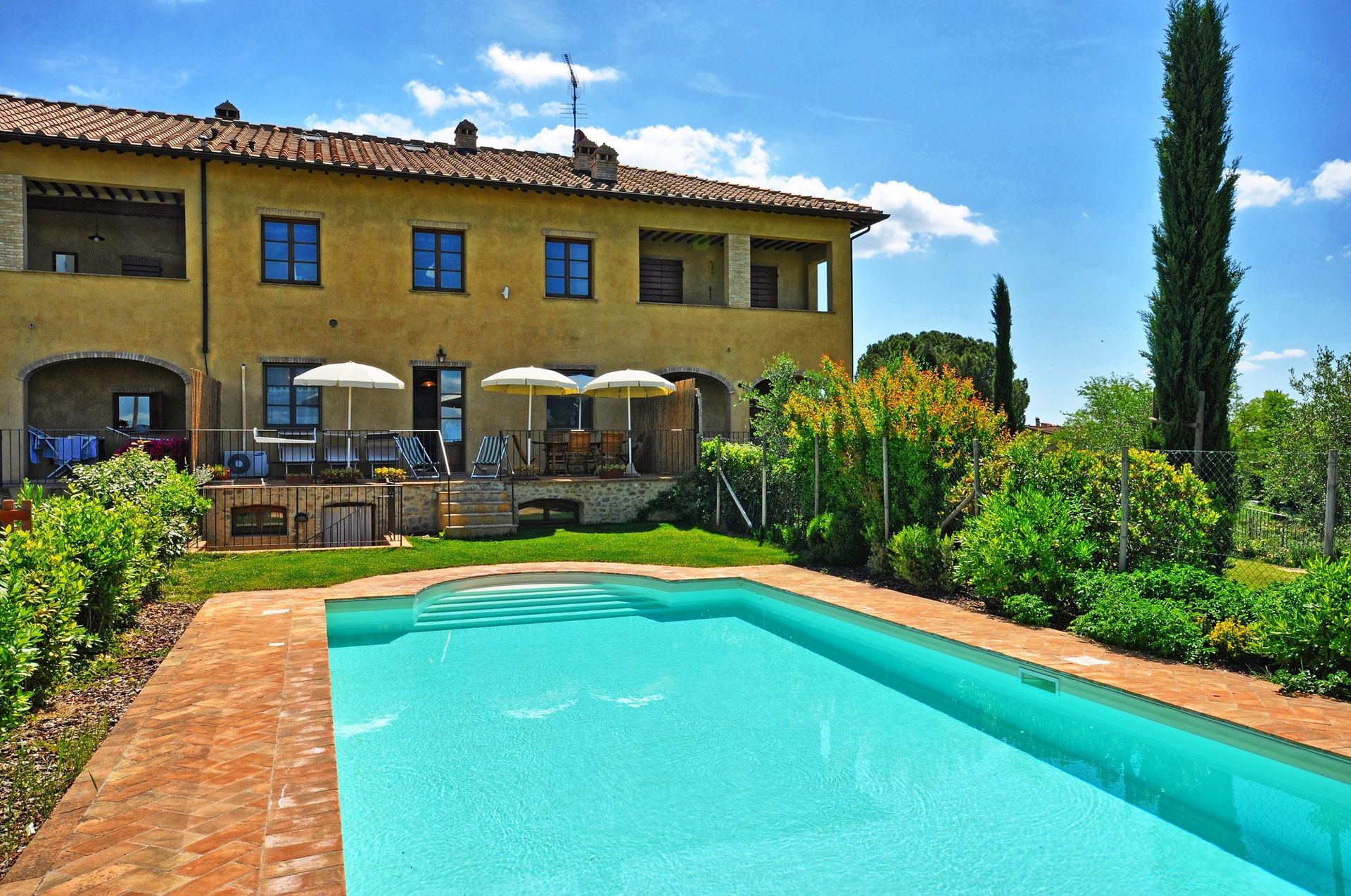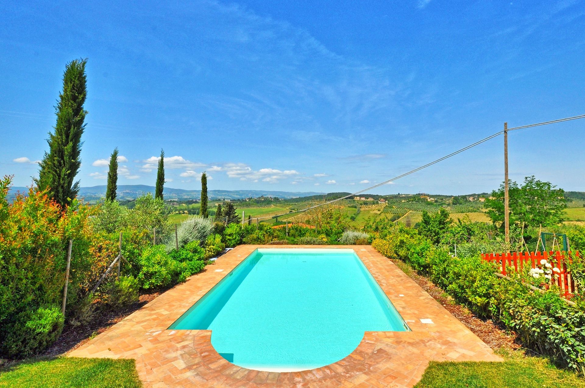 Distances: Poggibonsi (shops of all kinds) 4 km away, San Gimignano 15 km, Siena 35 km, Florence 41 km away, Montalcino 70 km, Lucca and Pisa are about 95 km away, Arezzo 110 km away.