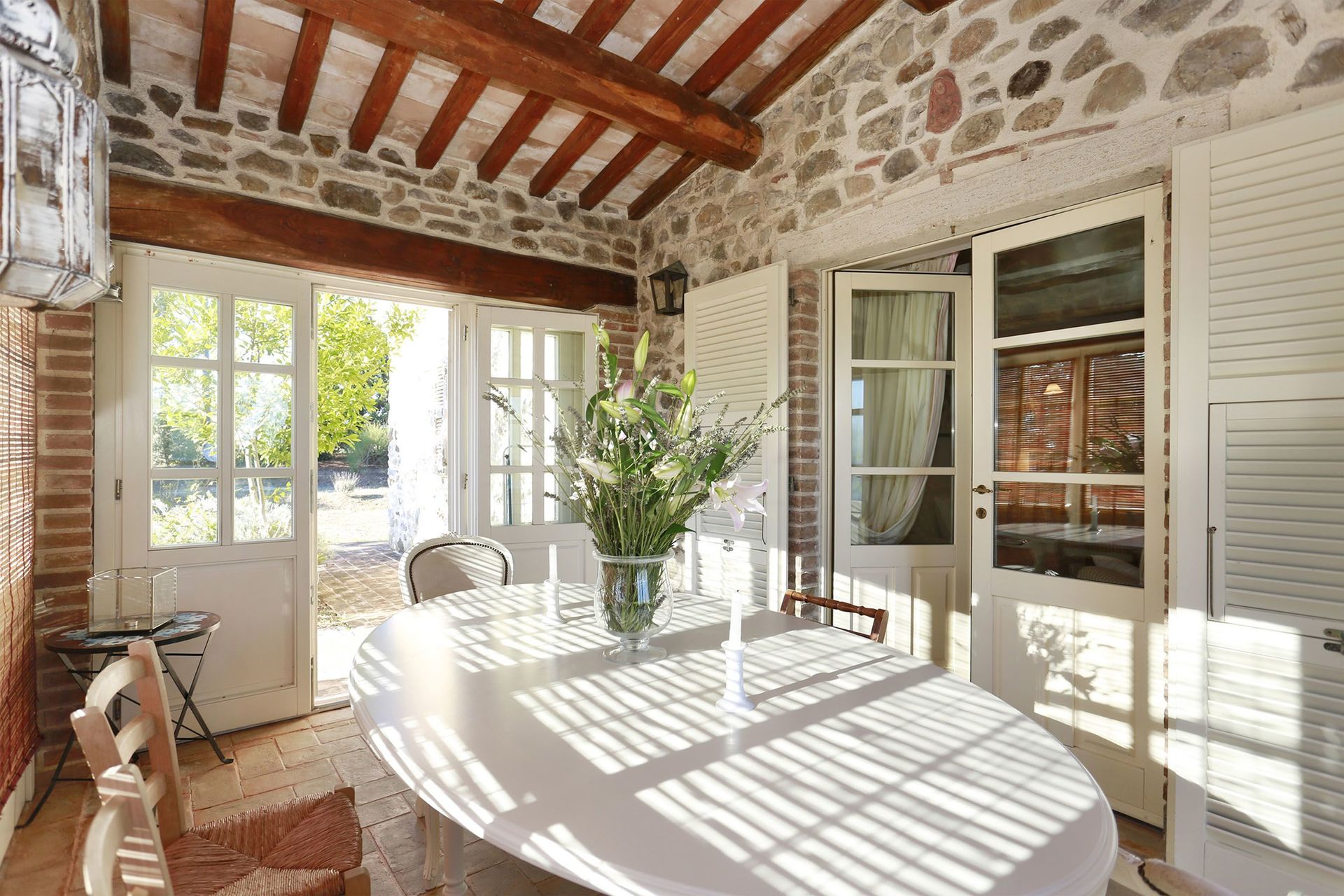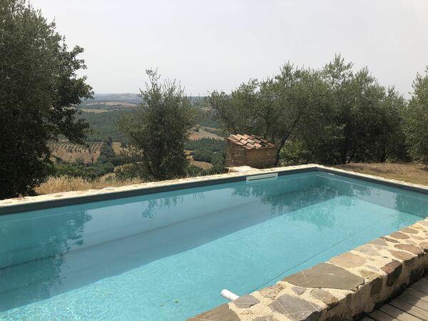 After arriving you will be greeted by the owner or manager where you’ll find a lovely clean well-maintained property with views of the hills ideal for a peaceful holiday in Tuscany. Regardless of how you spend your days - visiting museums, sightseeing, shopping or just driving in the countryside, when you arrive home you can relax with your family and friends at the pool for a perfect ending to another day in Tuscany. Sharing a meal with friends and family is a big part of the Tuscan culture. Take advantage of the well-equipped kitchen to prepare meals using local produce while on your holiday. The kitchen includes coffee machine, microwave, toaster, stove and refrigerator, as well as, plenty of tableware and cutlery for up to seven people. Dine 'al fresco' like a real Tuscan, the fully furnished veranda is the ideal setting to enjoy food, family and the beautiful Tuscan weather.