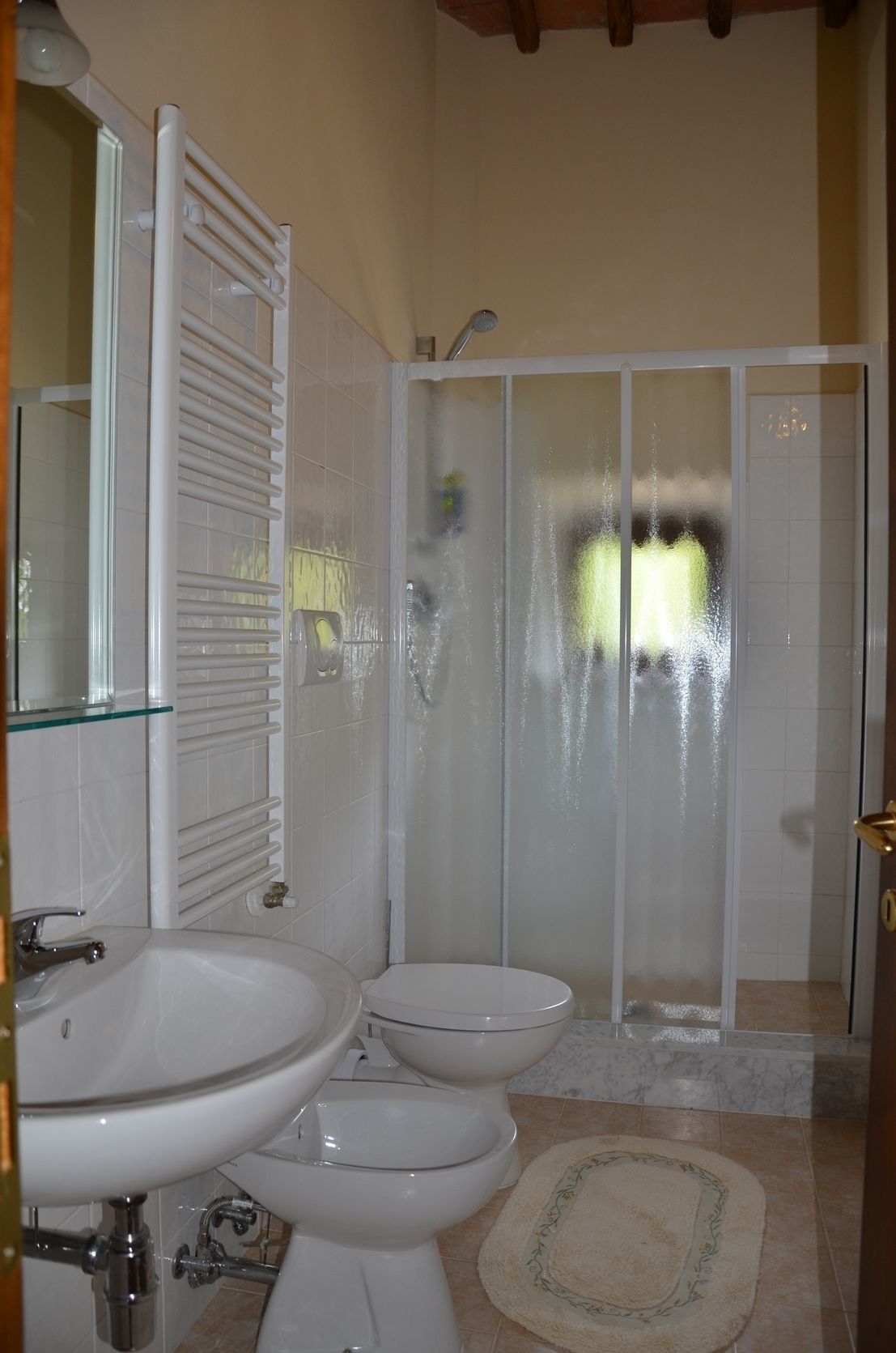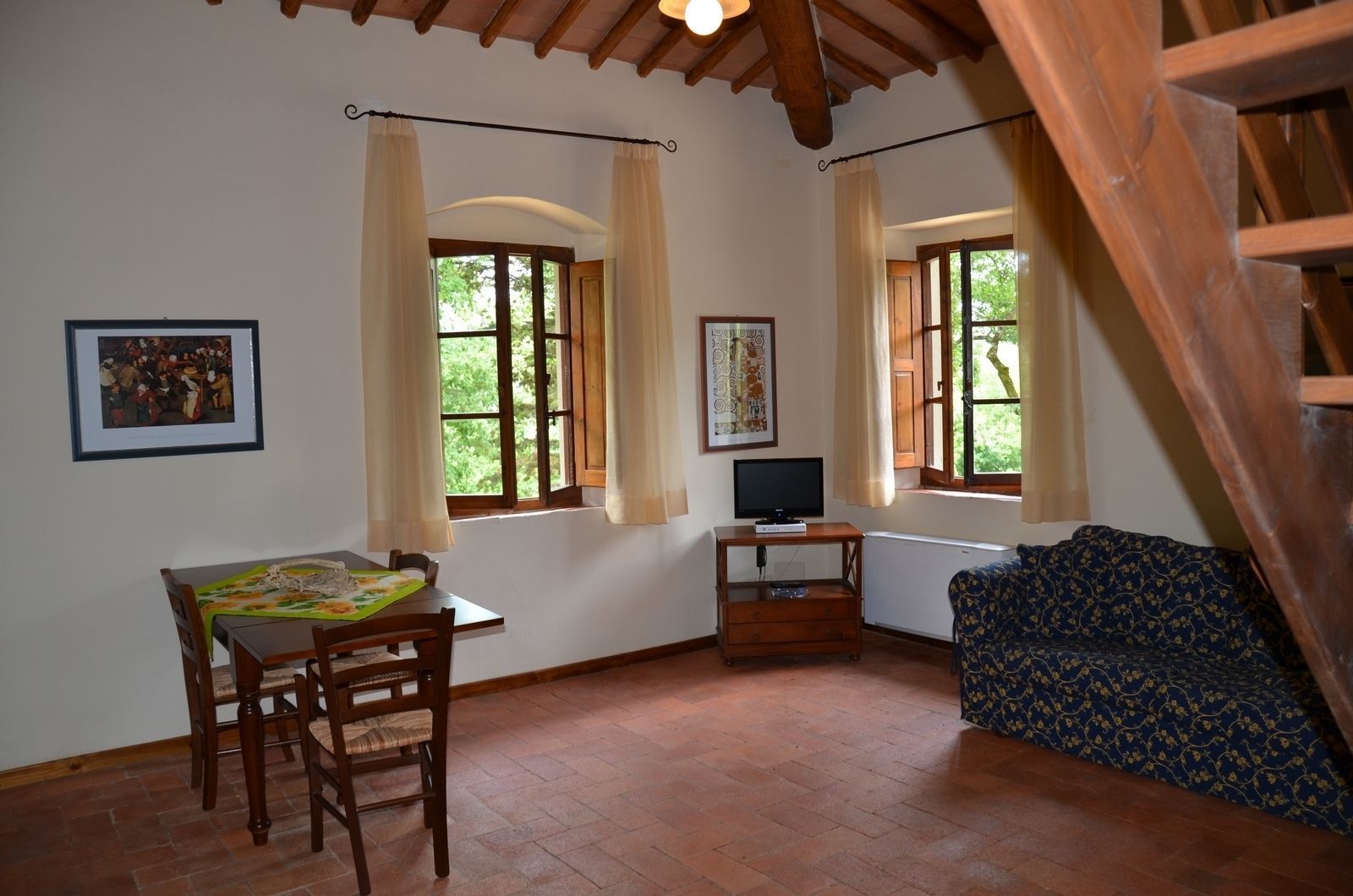 The apartment "Canaiolo" on the first floor of the farmhouse going up the main staircase is composed of 2 double bedrooms 2 bathrooms with shower and a large equipped kitchen (oven, microwave, dishwasher, freezer, American coffe-maker, toaster)