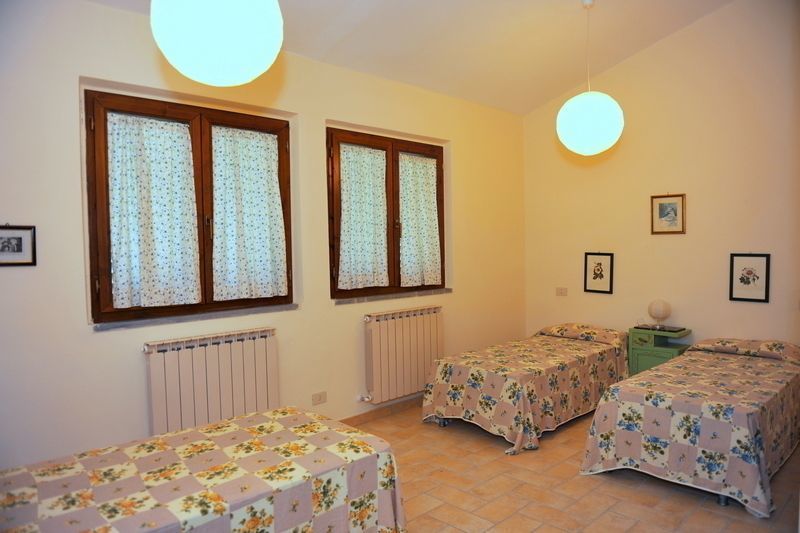 2 bedrooms (one double and 1 with 3 sinlge beds) and 2 bathrooms with shower. In the kitchen there are fridge, microwave, dishwasher, coffee machine and television.