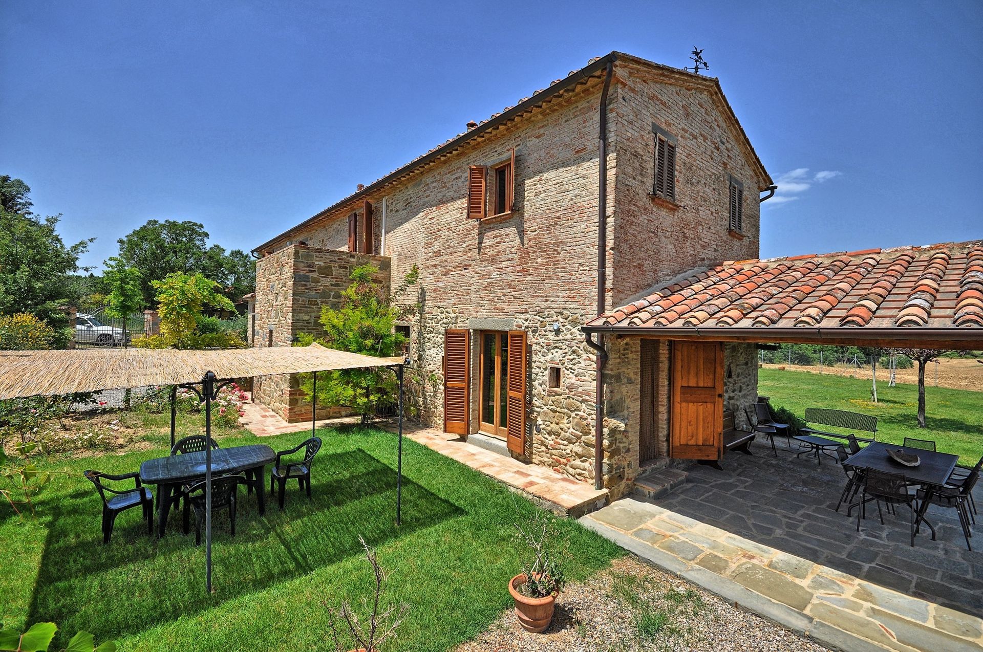 Distances: Camucia with general stores and railway station 6 km away, Cortona 10 km, Lake Trasimeno 15 km away, Montepulciano 27 km, Pienza 35 km away, Perugia 45 km, Siena 75 km away, the charming town of Orvieto 86 km away, Todi 90 km, Florence 105 km away.