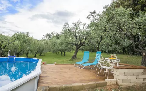 The outdoor spaces at "Il Fienile del Colle" are truly a highlight of the property, offering a rich variety of settings in which to enjoy the Tuscan climate. The private above-ground swimming pool measures 7 x 4 m with a uniform depth of 135 cm and is available seasonally from 01 May to 15 October, providing a refreshing escape during the summer months. The beautifully maintained 2-hectare garden is fully fenced and features a dedicated barbecue area, a volleyball court, an outdoor shower, and carefully arranged garden furniture that invites guests to dine, relax, and socialise in the open air. Whether you choose to gather around the barbecue for an alfresco meal or simply unwind on the garden furniture while taking in the surrounding landscape, the outdoor environment of this property offers an authentic and deeply enjoyable Tuscan experience.