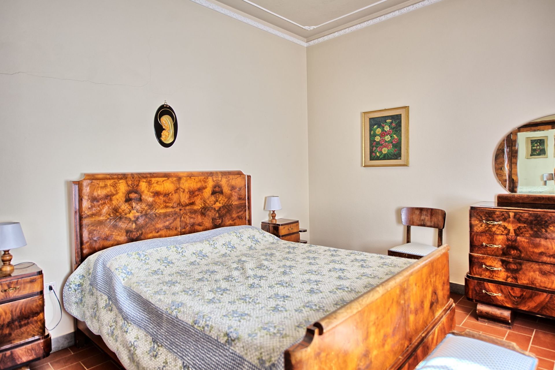 Nice farmhouse dating back to the beginning of the 20th century quietly situated on a large 6-hectare estate producing olive oil and wine. This villa, located in walking distance to the village of Ambra, was completely and tastefully restored in the 70’s and was turned into a welcoming country house offering nice interiors furnished in a rustic style.