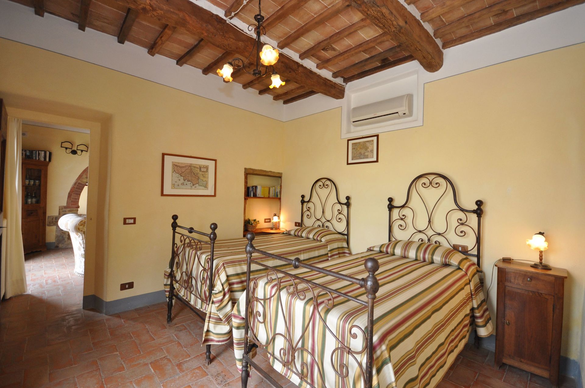 This villa has been tastefully restored preserving its original architectural features and ancient materials such as the beautiful terracotta-tiles floors and beamed ceilings and has been converted into a welcoming country-side residence. The interiors are tastefully furnished with some antique pieces.