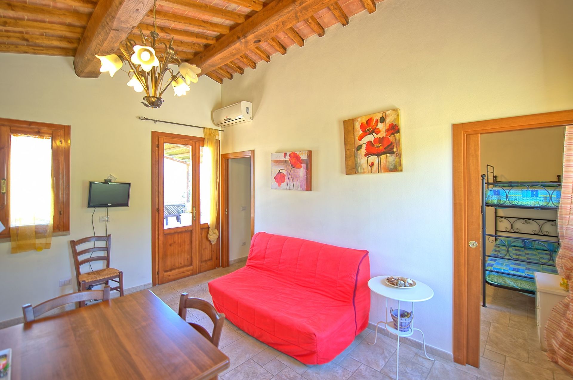 This cottage was so nicely appointed with all of the little details that most don’t provide. For instance, the small kitchen had all cooking utensils and even a small espresso maker. We’d take our morning coffee out on the terrace and enjoy the morning sounds as we took in the view. The covered terrace was sure useful as there were a couple of rainy days, yet we kept dry even as we stubbornly insisted on enjoying our antipasti while enjoying the lovely rural vista. BTW - the photos are older and do not show the newly constructed terrace roof.