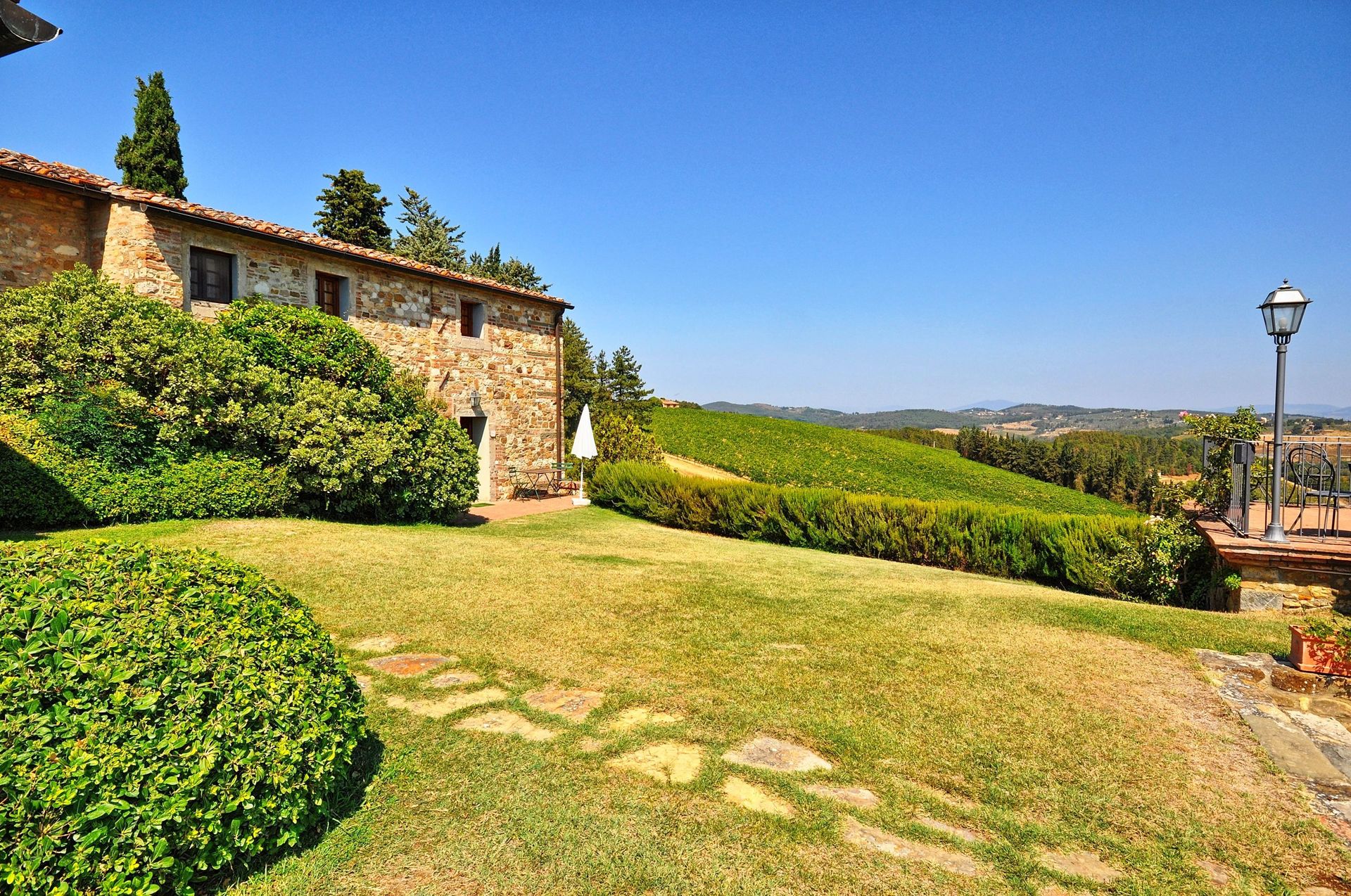 Beautiful farming estate comprising 6 restored units situated on the Chianti hills, a short distance from the village of Mercatale (with general stores) and 22 km from Florence away. This property offers large outdoor areas and a nice panoramic pool with splendid views over the surrounding vineyards (producing excellent wines). All of the apartments provide welcoming interiors furnished in a rustic style. The units Tenuta 1 and 2 are approx. 50 from the pool away while the remaining units are closer. By the pool, guests can enjoy use of a beautiful panoramic terrace with sun-umbrellas and sofas and of a covered area with WI-FI in internet connection (WI-FI internet is also available near the reception, closer the units Tenuta 1 and 2).