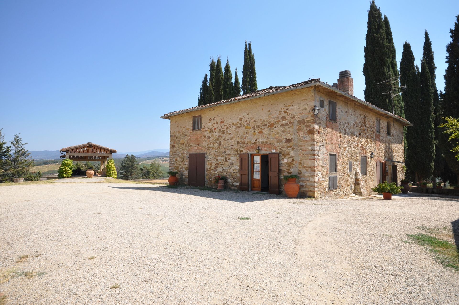 Distances: Mercatale with general stores 4 km away, San Casciano 10 km, Greve in Chianti 12 km away, Florence (airport and railway station) 22 km away, San Gimignano 37 km, Siena 60 km away, Arezzo 90 km, Pisa (airport) 92 km away, Lucca 95 km away.