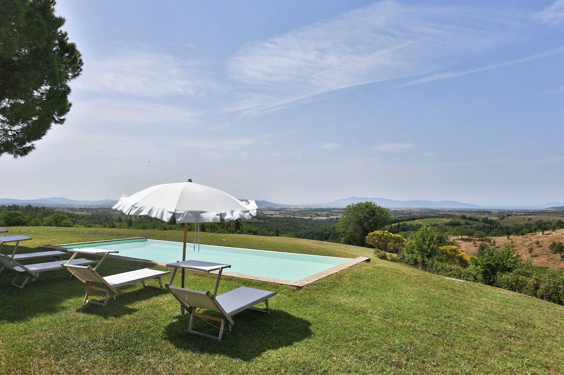The panoramic position offers the most spectacular views on the sea and on the Tuscan Archipelago, with the Giglio island just in front of the lovely equipped terrace, a few steps from the swimming pool, providing a unique scenery where to enjoy magical sunsets. The accommodation is split in two buildings which have been restored retaining the original character. The house, reachable through a 2,6 km unmade road, is surrounded by a typical Mediterranean garden, with olive trees, rosemary and lavender plants, and a wild, natural vegetation all around, wonderful for walking and exploring.
