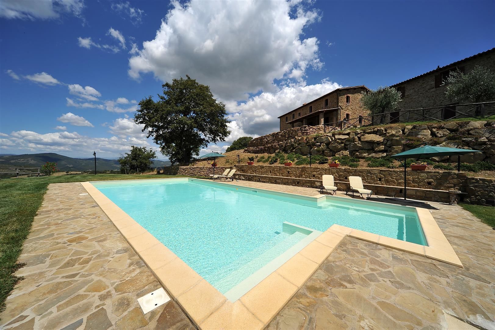 The farmhouse has recently been renovated, respecting its characteristics, with the floors in terracotta, ceilings in terracotta and visible wooden beams, fireplaces in serena stone, typical of the area. The inside has had careful treatment and has been fitted with modern and functional accessories, the furnishings are traditional in good taste. For the finishing touches high quality materials from local craftsmen have been used.
